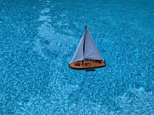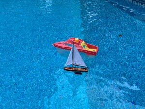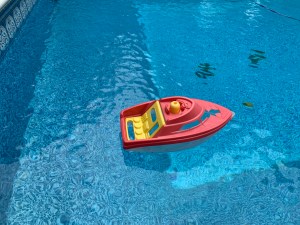 One of the pool toys my wife purchased for our granddaughter to play with in the pool was this little plastic cabin cruiser, that I nicknamed, the S.S. Minnow (from the 1960s TV show Gilligan’s Island).