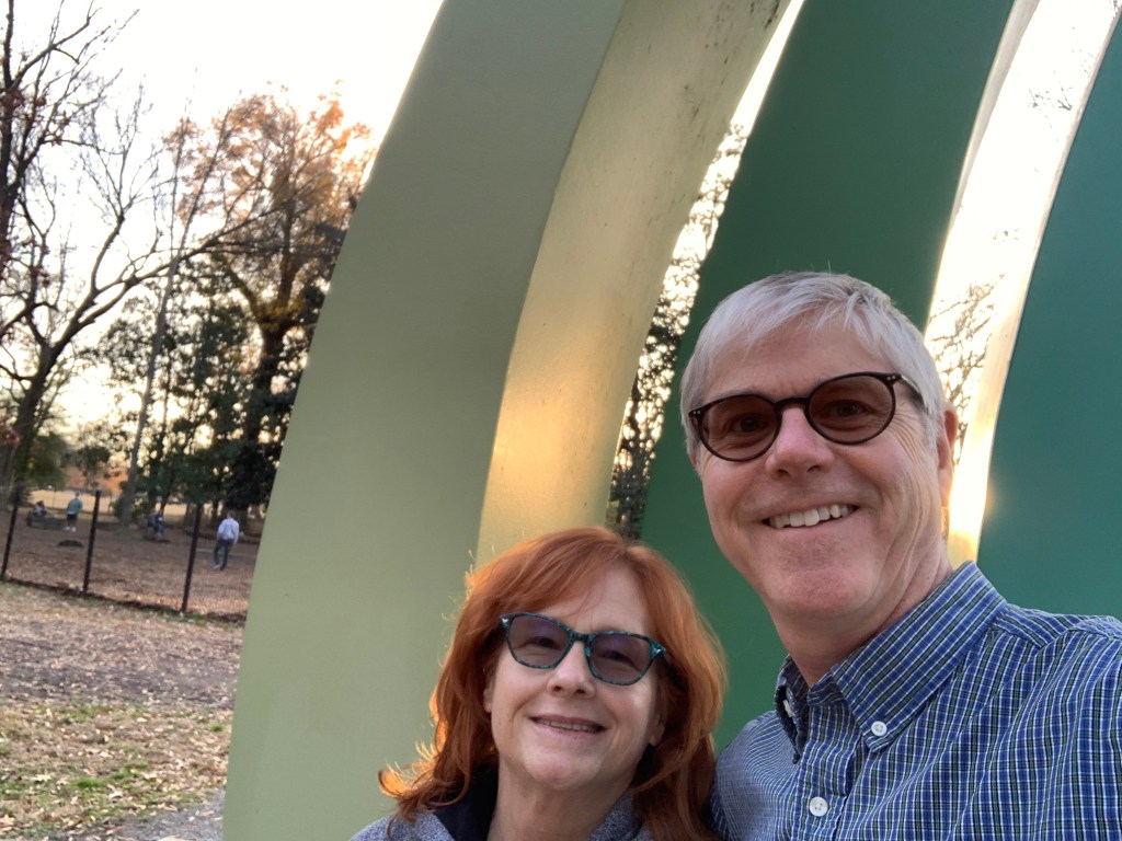 On the afternoon of our anniversary, we drove down to the condo to begin our celebration.  After settling in, my wife suggested we go for a long walk in the huge urban park not far from our condo.  Fortunately, the weather was dry and warm enough for us to comfortably do so.  We ended up taking over an hour walk, stopping once to get a quick anniversary selfie as the sun began to set.
