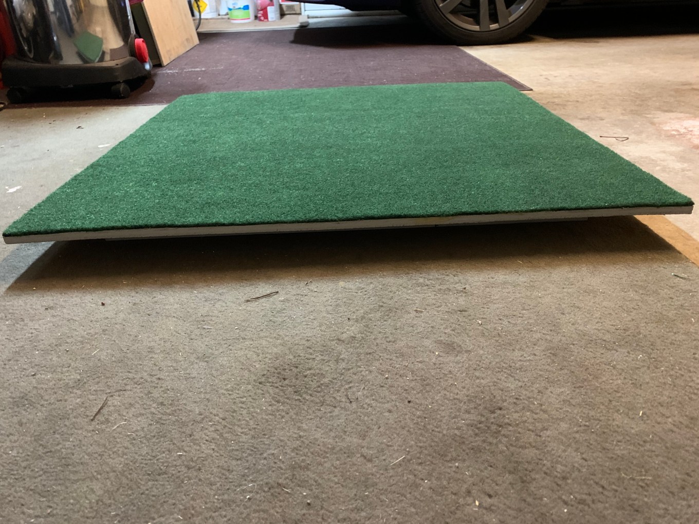 Cutting the carpet down to size revealed several places where excess glue was on the edge of the plywood. It took a sharp razor paint remover to get this off which scarred the edge in certain places, so I added a final third coat of paint to the edge.