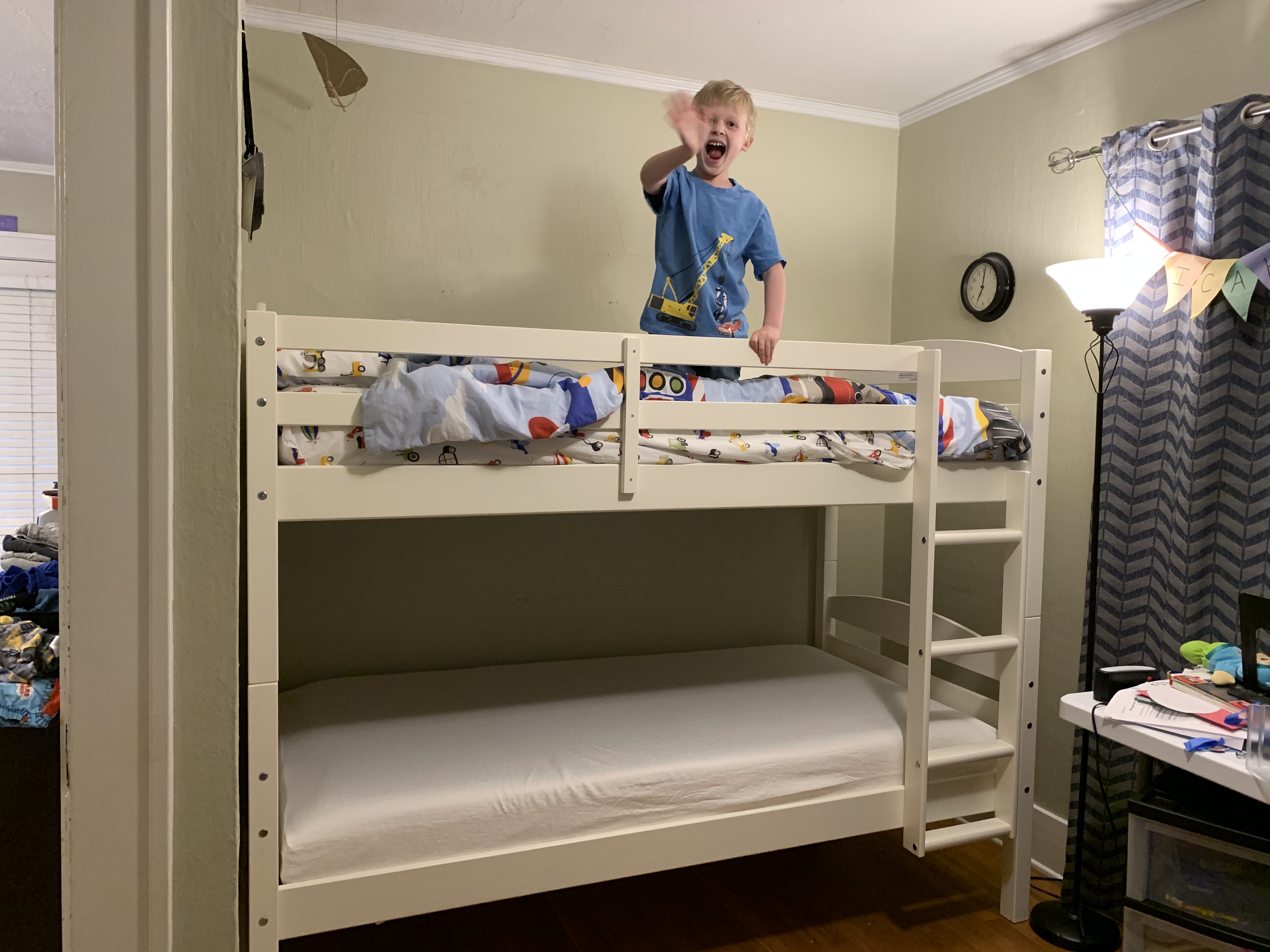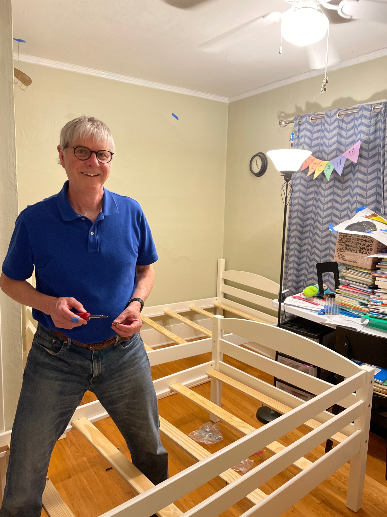 With the youngest son’s bed completed, the next order of business was to assemble the bunk beds in our oldest grandson’s room so he would have a place to sleep that night.