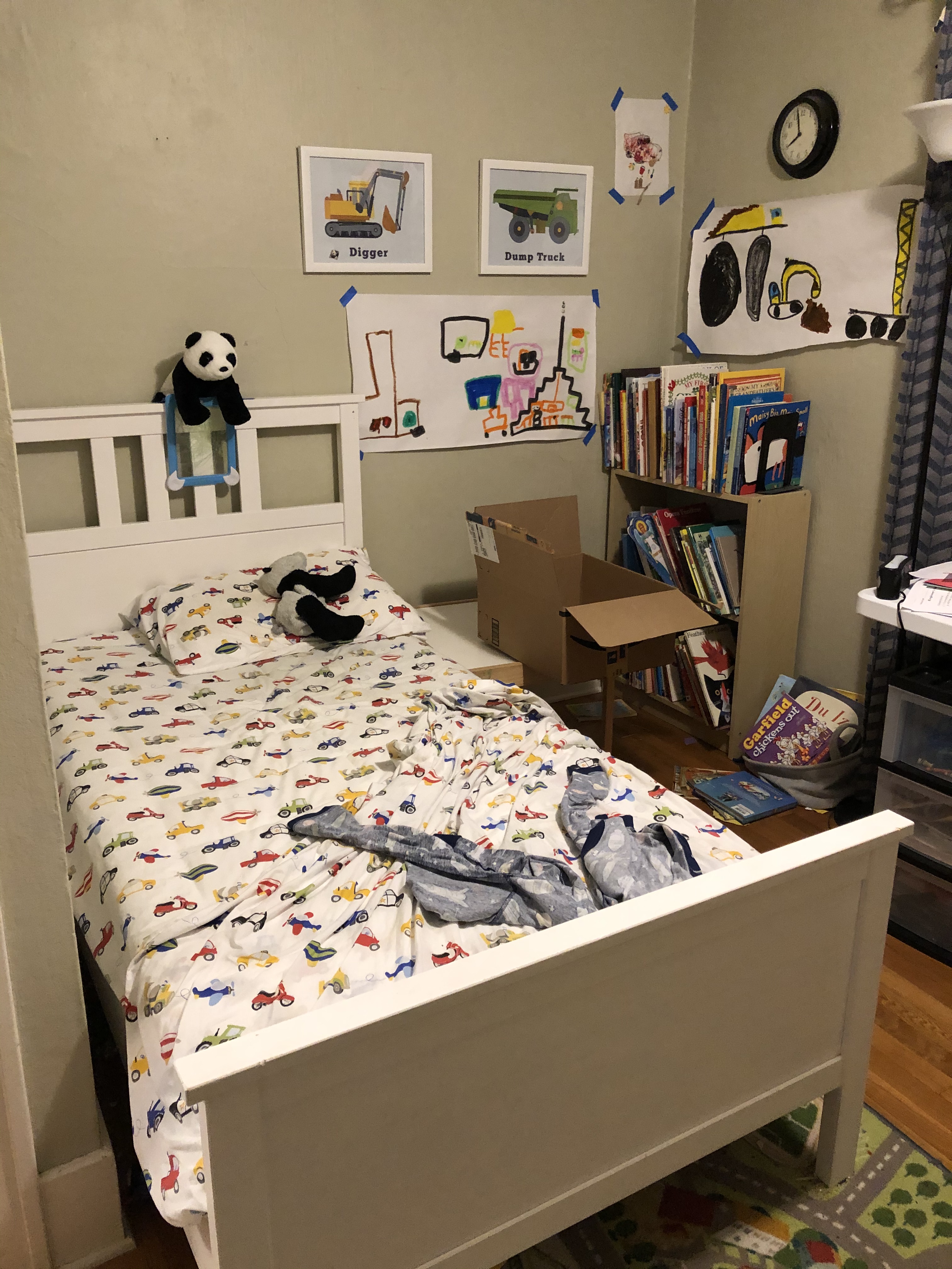 First up was to disassemble our oldest son’s bed and reassemble it downstairs in the younger boy’s bedroom to replace his crib.