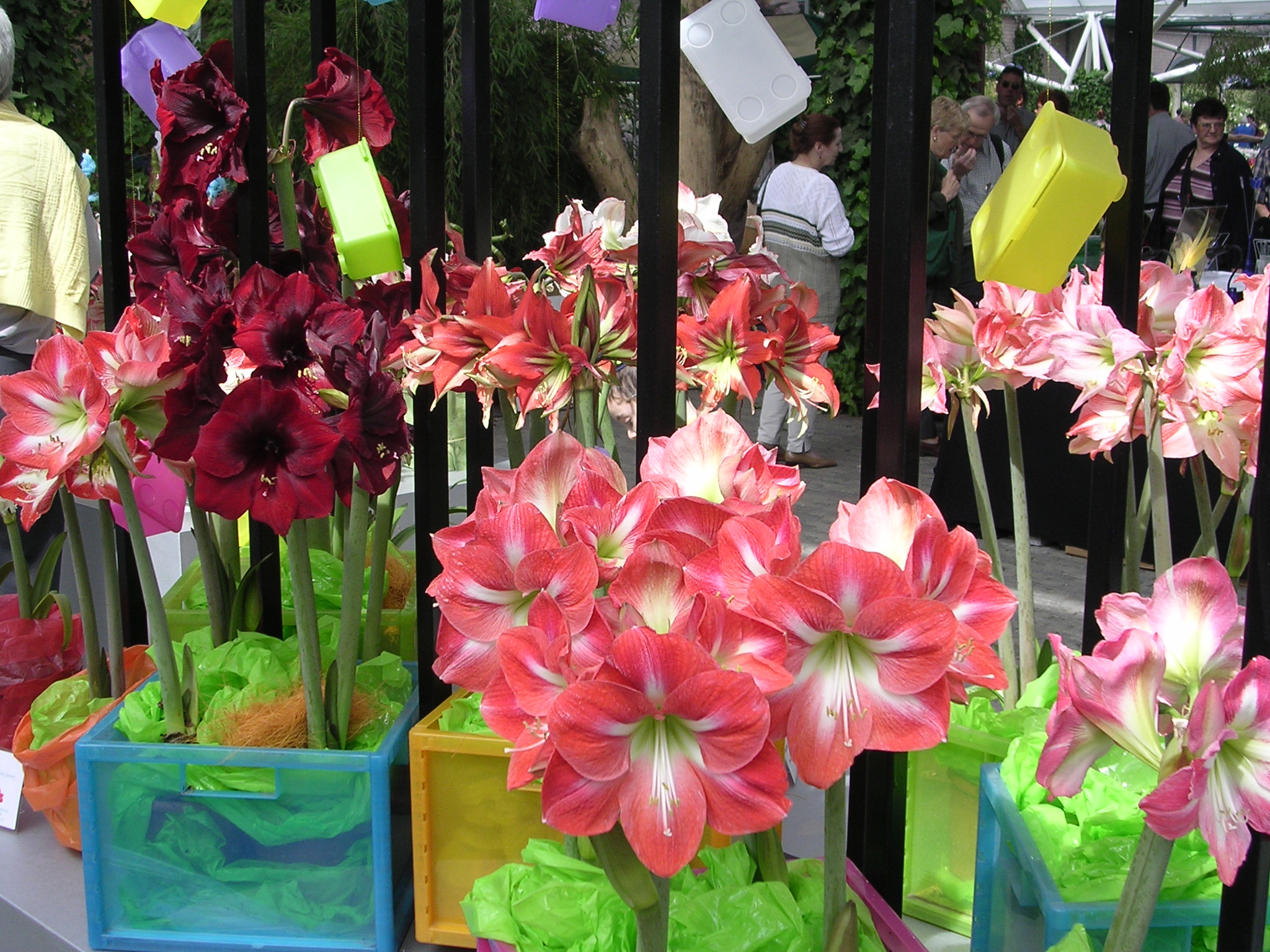Prior to travelling to Amsterdam, I can’t recall having seen these flowers blooming. I knew they were fairly common to grow indoors around Christmas and had probably seen them in this fashion. But when I went to the Flower Market on a canal in Amsterdam, I was amazed at the size of the bulbs being sold. I easily recognized the ones that were probably the size of a baseball but when I came across a booth that had ones as big as a cantaloupe, I could hardly believe my eyes. They looked like amaryllis bulbs on steroids!