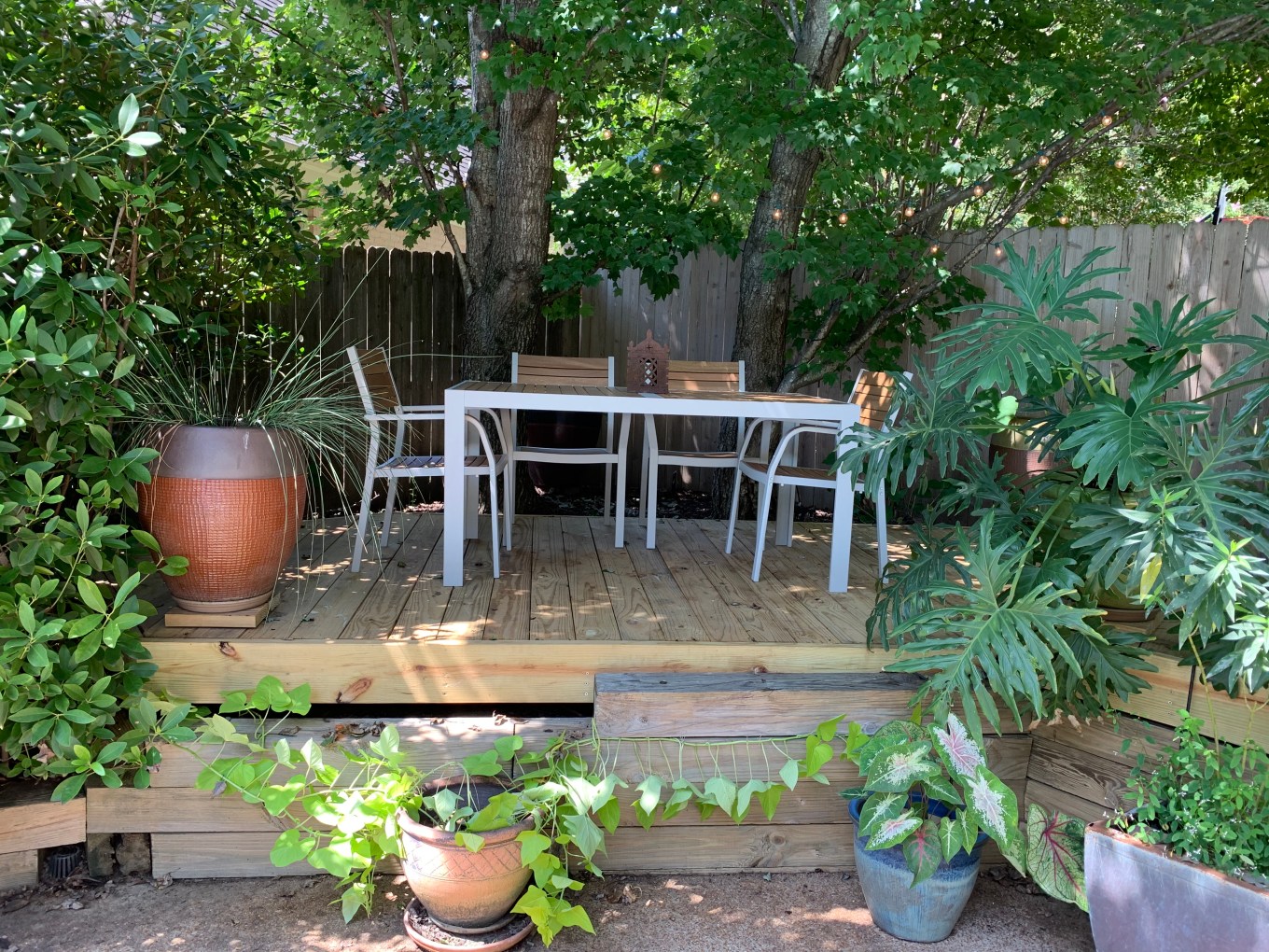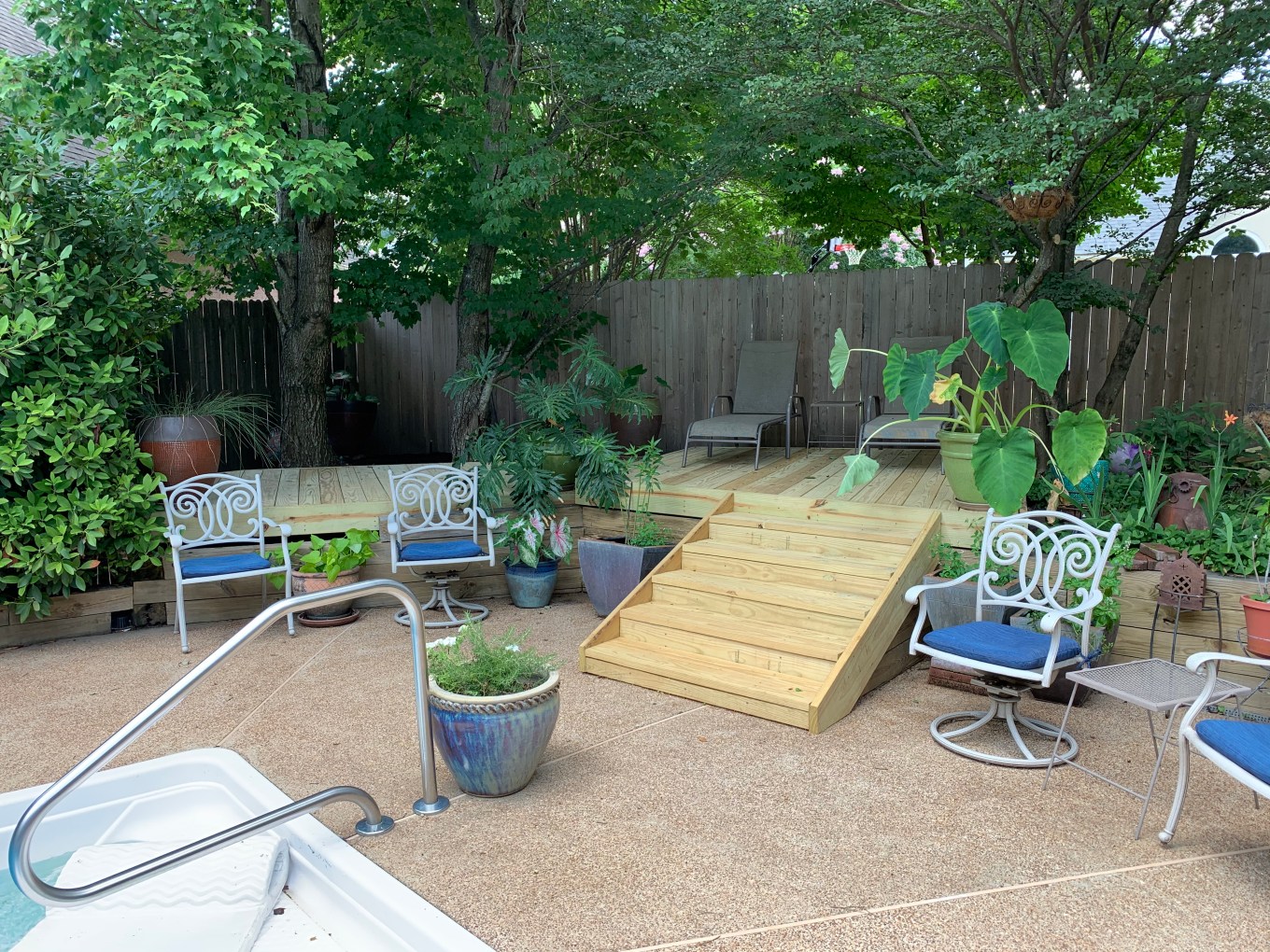 As I was laboring in the heat last summer rebuilding our backyard deck, I kept wanting to figure out a way for us to better utilize this lower portion of the deck. When our oldest son, a professional landscape architect, originally drew up the plans for this deck for us, he designed four different seating areas to allow intimate conversations to occur in several locations…