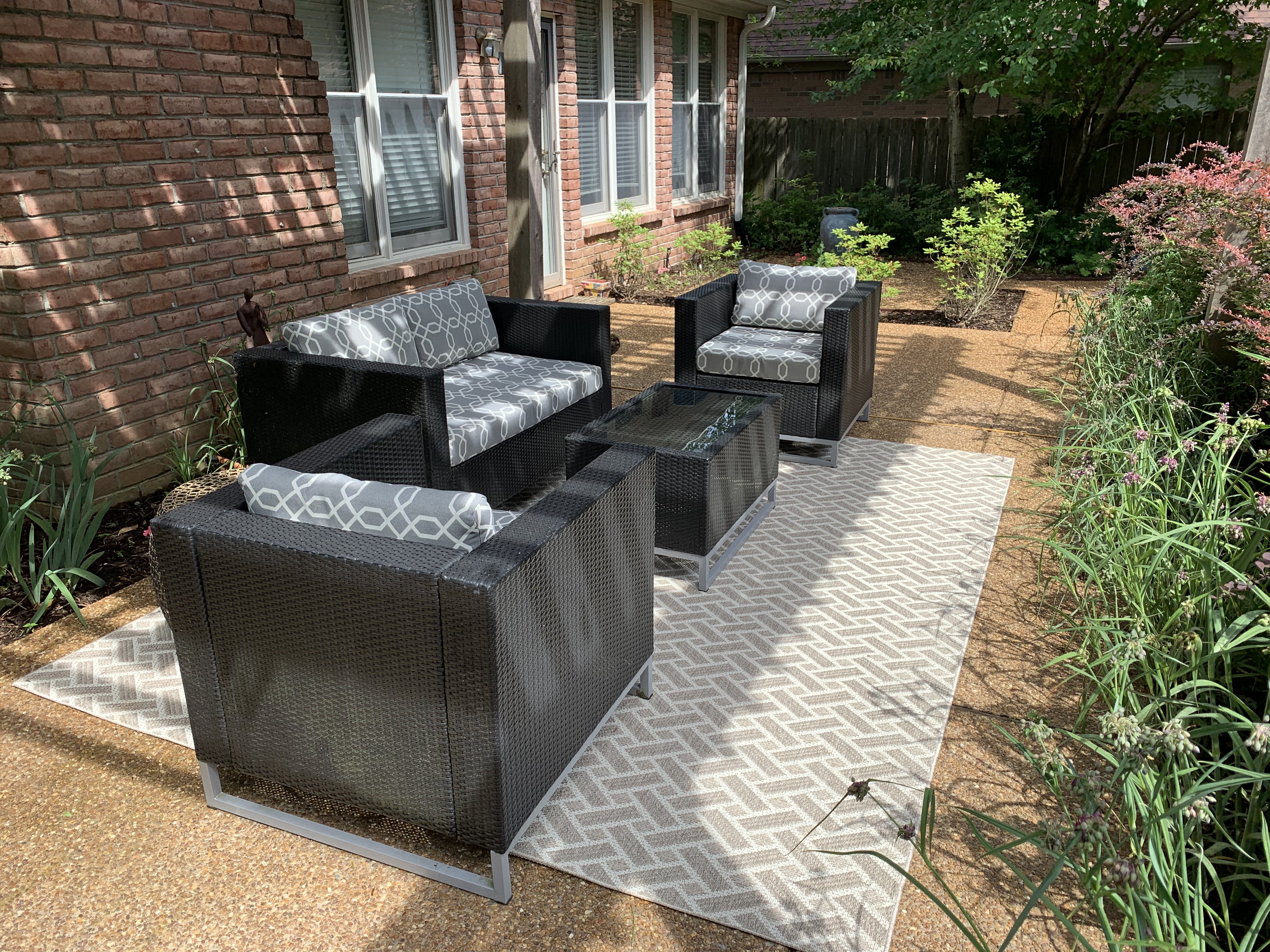 It seemed they had an outdoor table and chairs just the right size but when I went there, it was sold out. No surprise actually. As I was wandering around the big self-service warehouse area pondering what to do next, I came across a display of outdoor furniture I had not seen while walking through the vast showroom. I quickly texted a picture to my wife and she agreed that would work. Fortunately, they still had one table and four chairs left in stock.