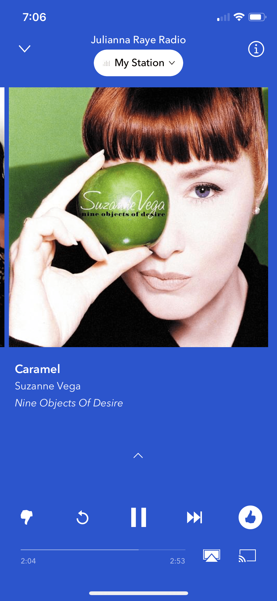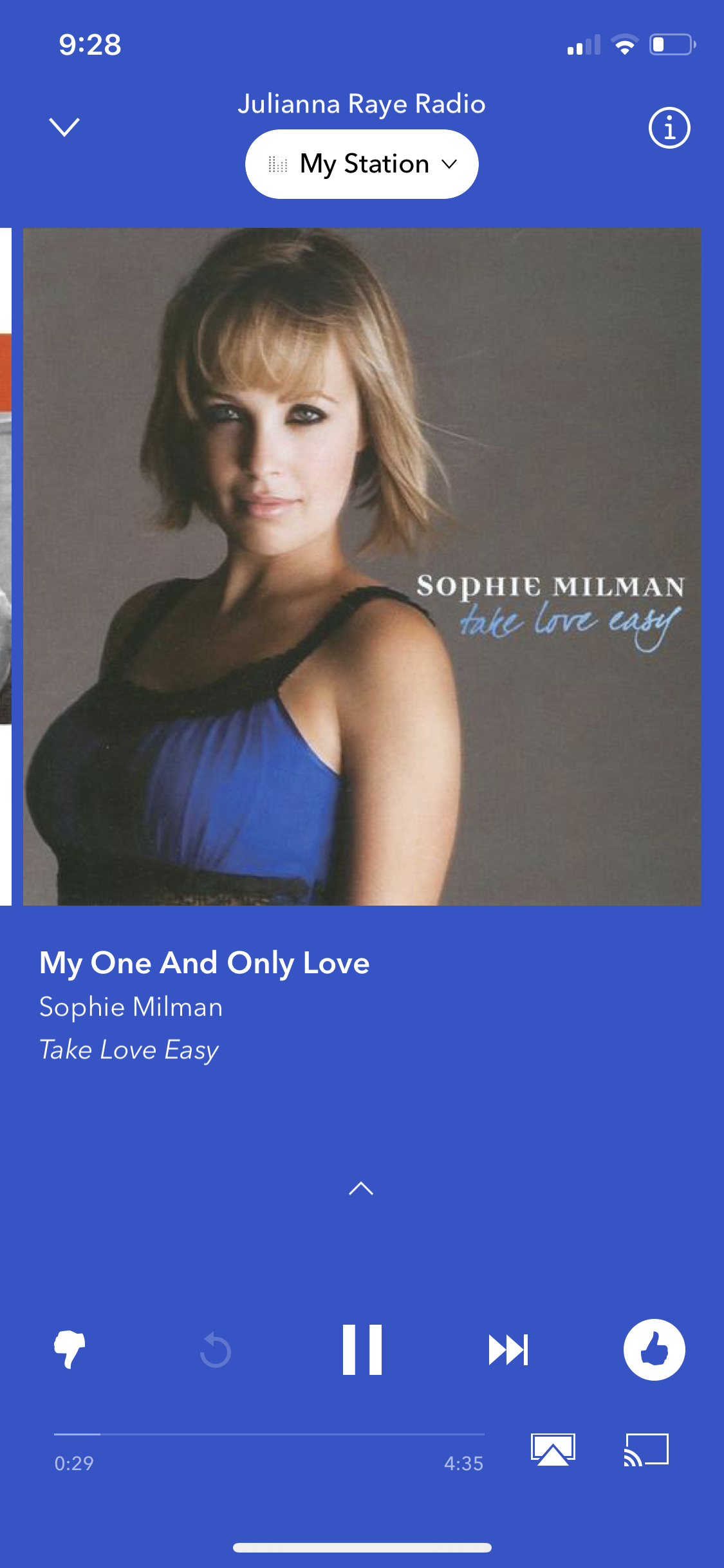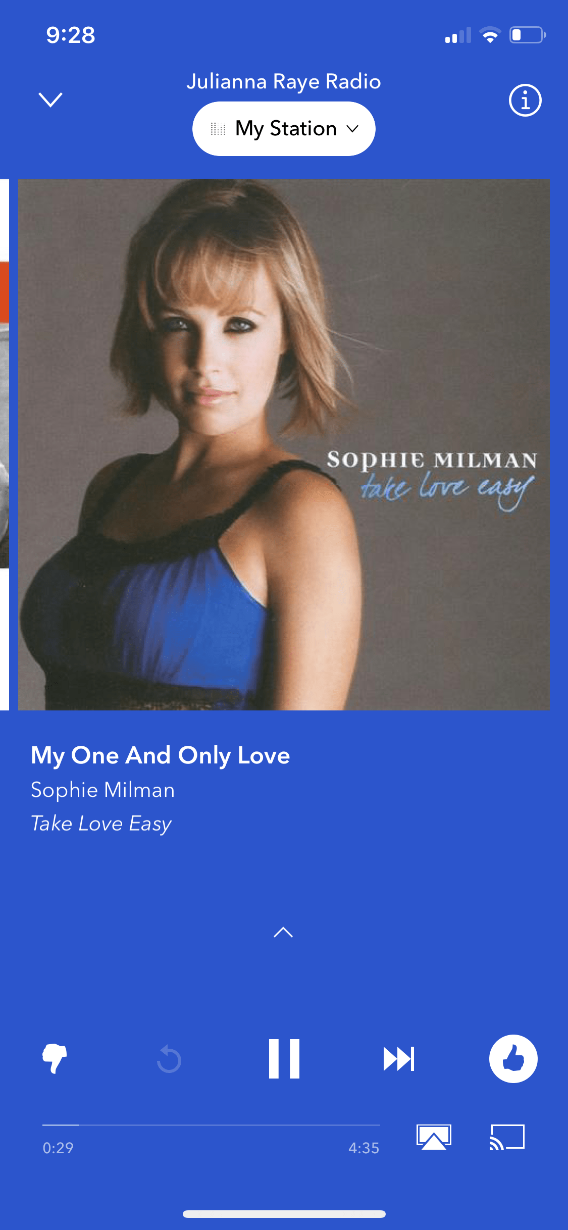 My jazz vocalist library was somewhat limited and so I decided to expand my library there first. Having enjoyed the mellow sound of Diana Krall’s voice, I began to listen to her station much more, thumbing up new artists I had not heard before and thumbing down ones I did not like.
