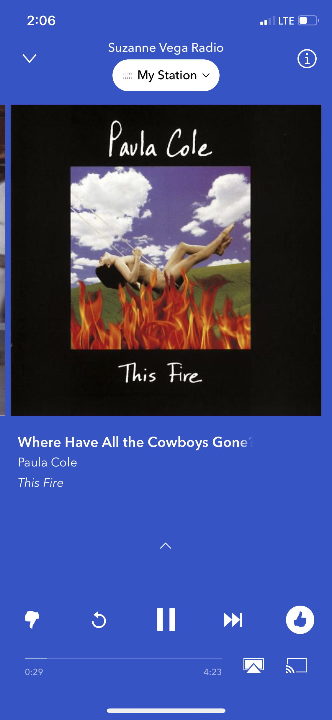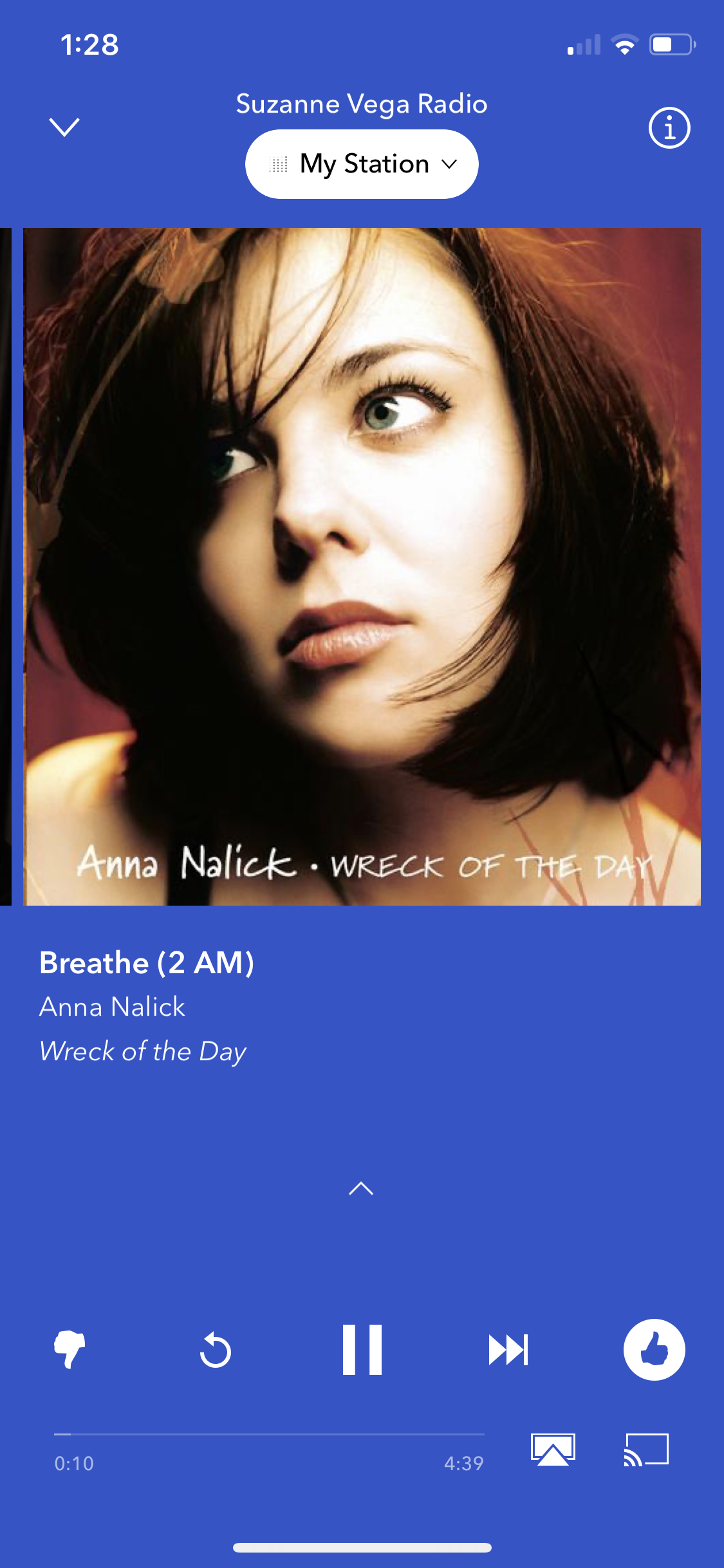 Suzanne Vega is another female singer-songwriter that I have discovered, having first enjoyed her song Caramel. She now has her own station as well.