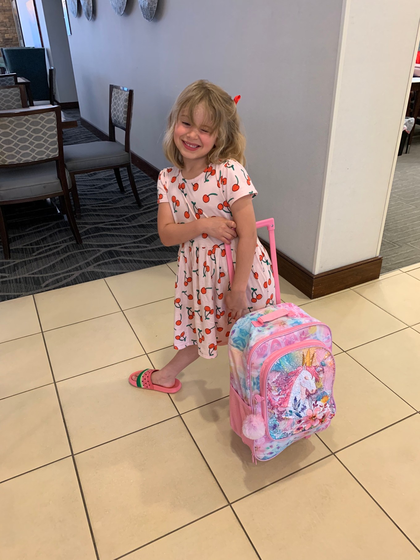The detour, while fun, unfortunately added some time to our trip as the two-lane roads back to the interstate never seemed to end. But our granddaughter was very patient and when we reached our final destination, she was ready to bound out of the car and check into the hotel with her brand-new luggage.