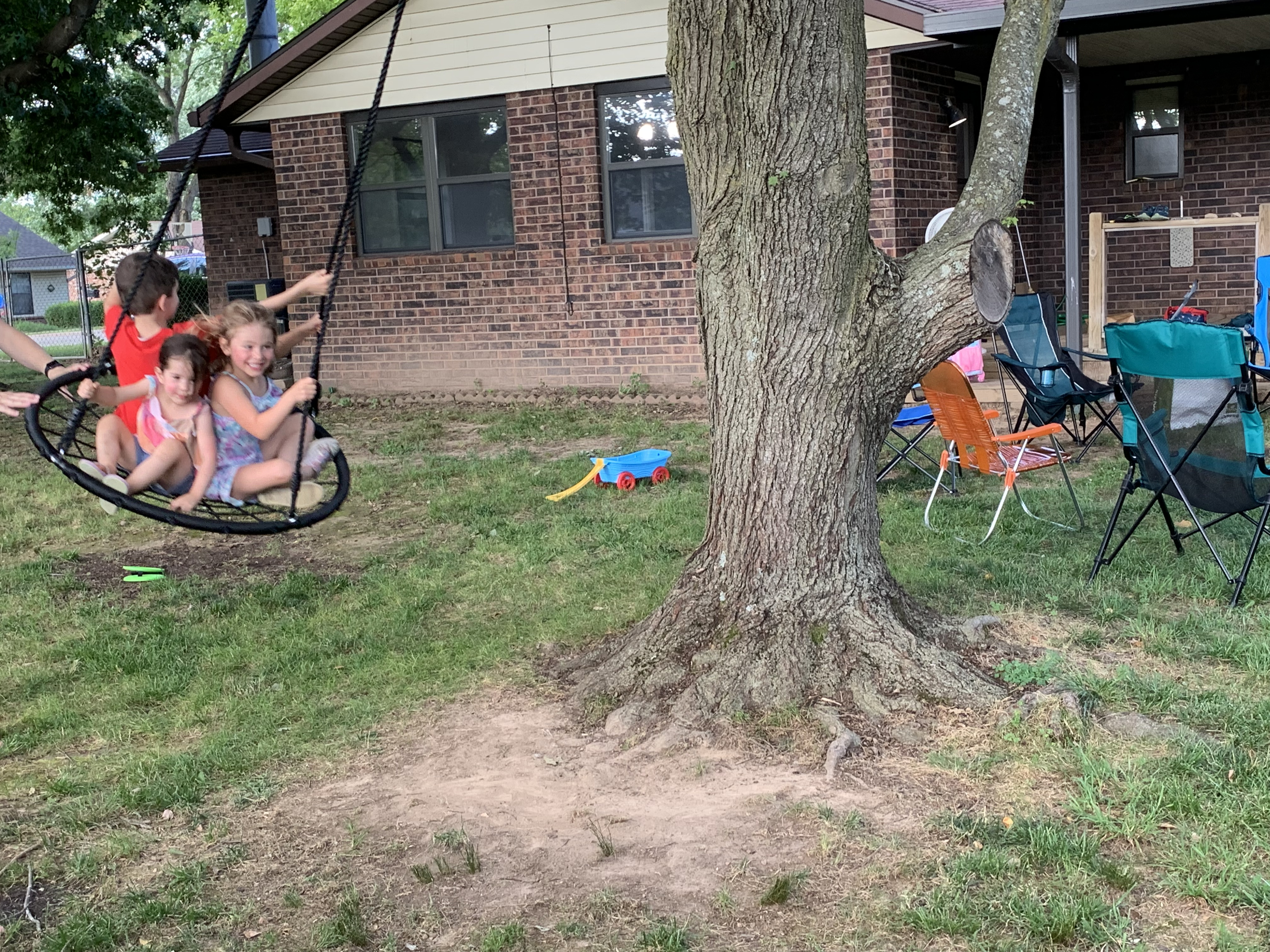 After unloading our things, we were off to her cousin’s house where play commenced almost immediately. After being cooped up in the car all day, I am sure it felt good for our granddaughter to run around kicking and tossing balls with her cousins…