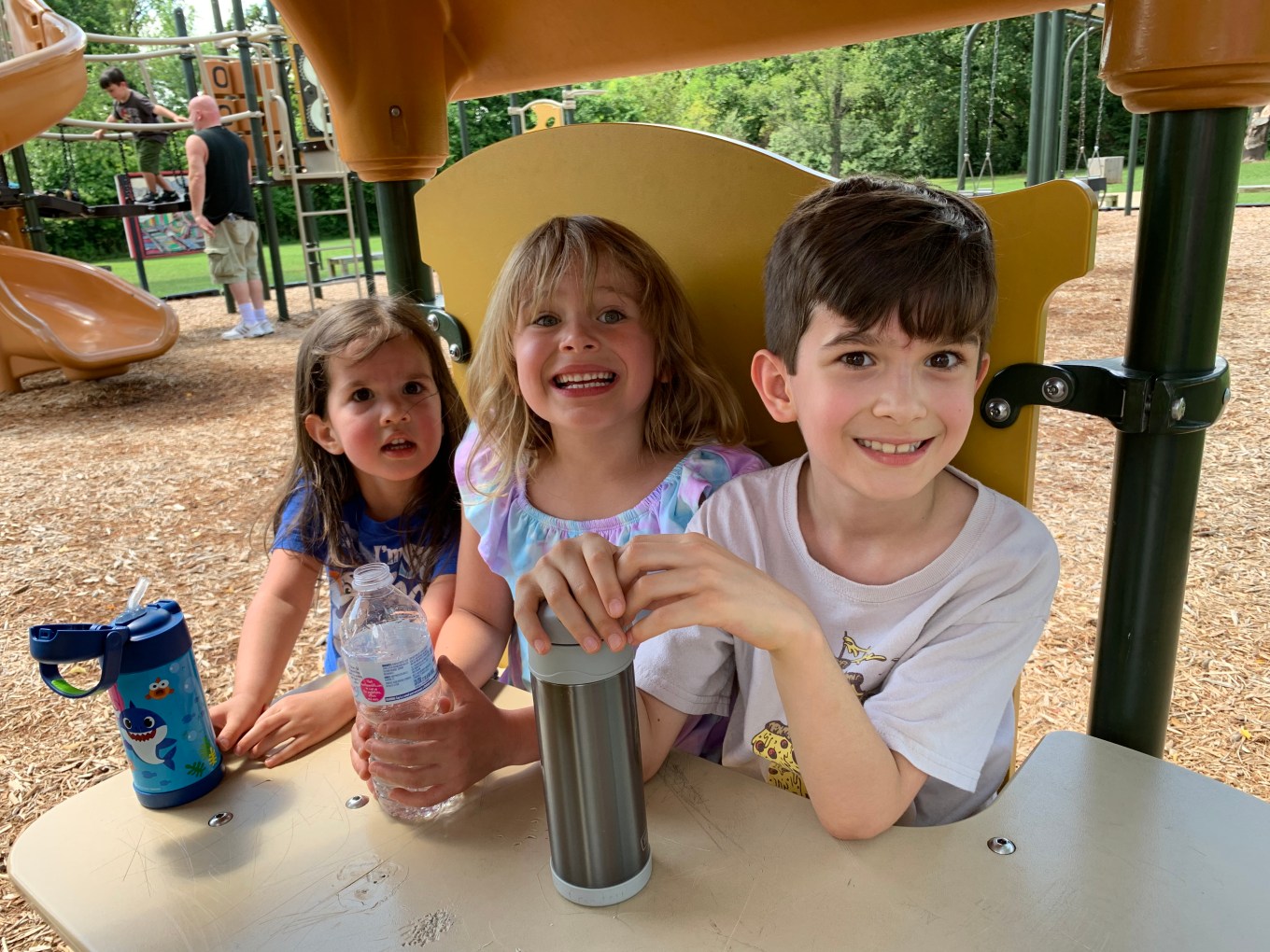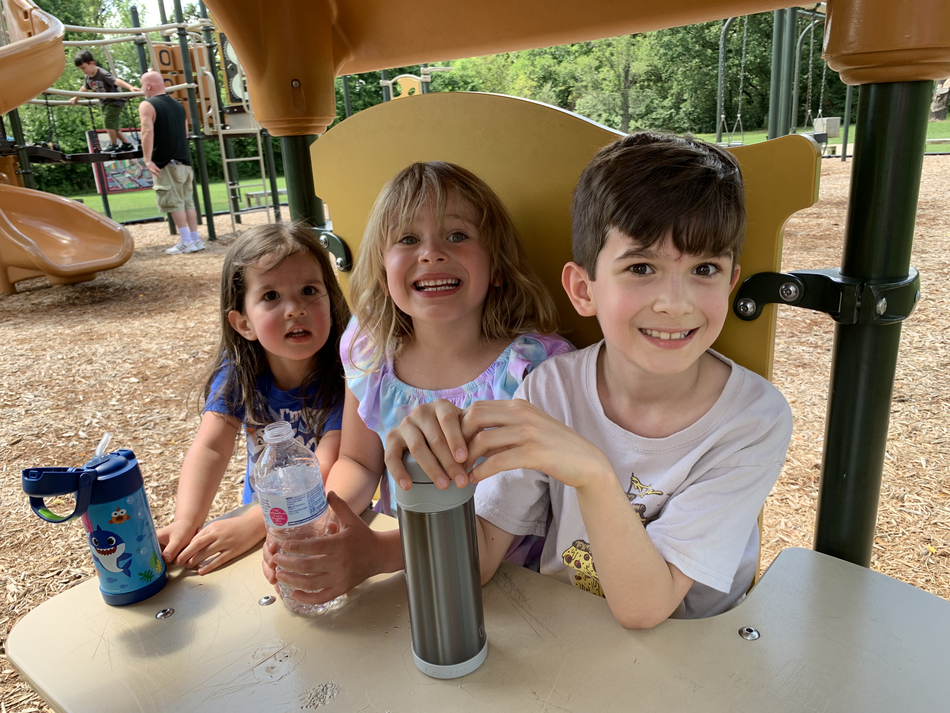 The final cousin outing was on Sunday afternoon at a nearby park where after swinging and sliding, the three placed a lunch order at an imaginary restaurant.