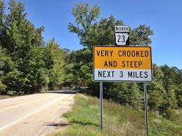 The other incident was when we encountered construction delays towards the end of our trip. With traffic backed up for miles and facing a significant delay, I looked up to discover that we were right near the exit for the Pig Trail, a fun, curvy scenic road I had been meaning to drive on but had not so far on any of my trips to visit my sisters. Once we arrived at the beginning of the trail and I saw the sign that the next 3 miles were “Very Crooked and Steep,” I knew I was in for a treat.