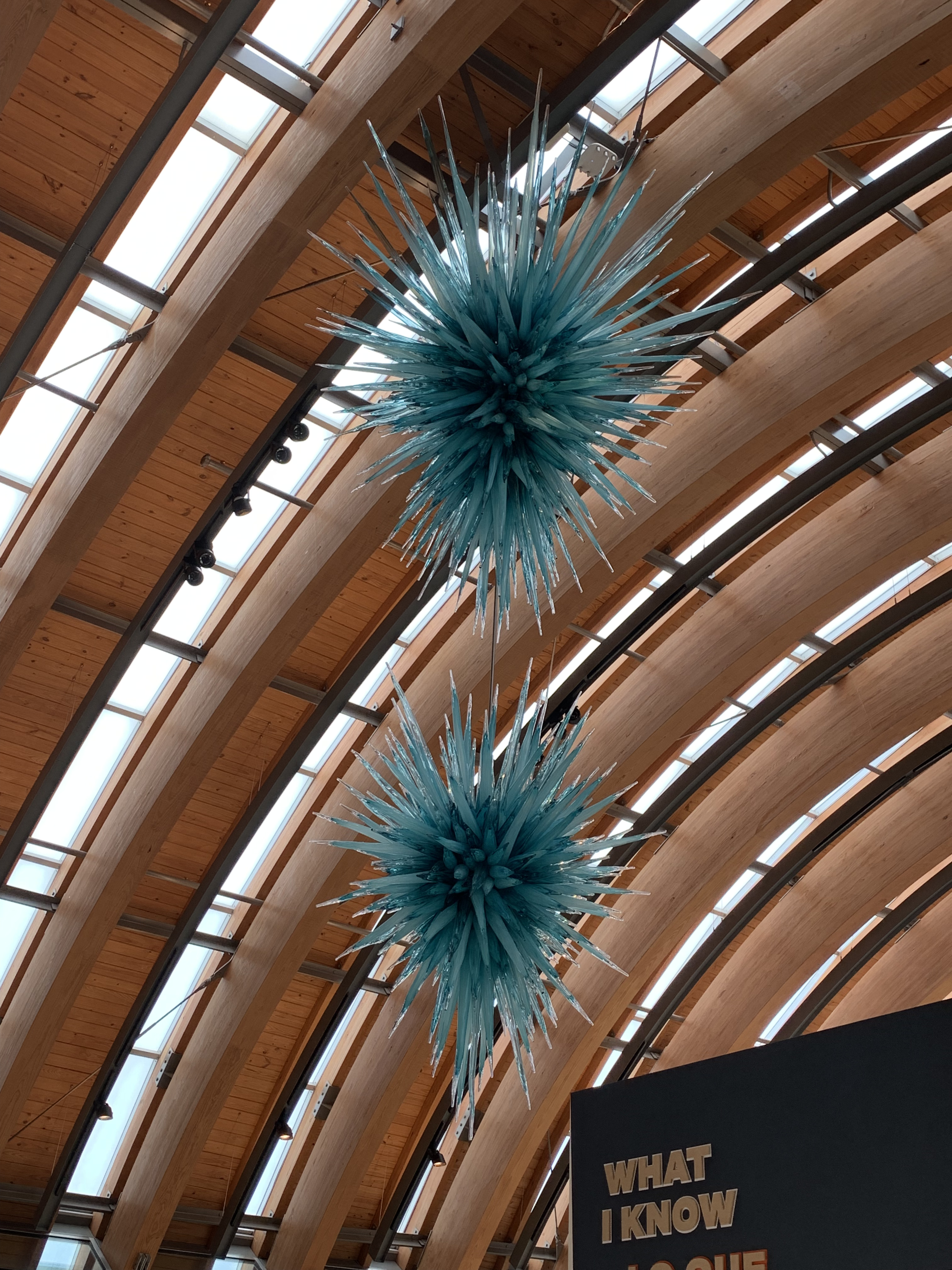 With rain in the forecast, we decided to visit Crystal Bridges Museum where one of my favorite pieces was an ice-like glass sculpture designed just for this space by Dale Chihuly, my favorite glass artist.