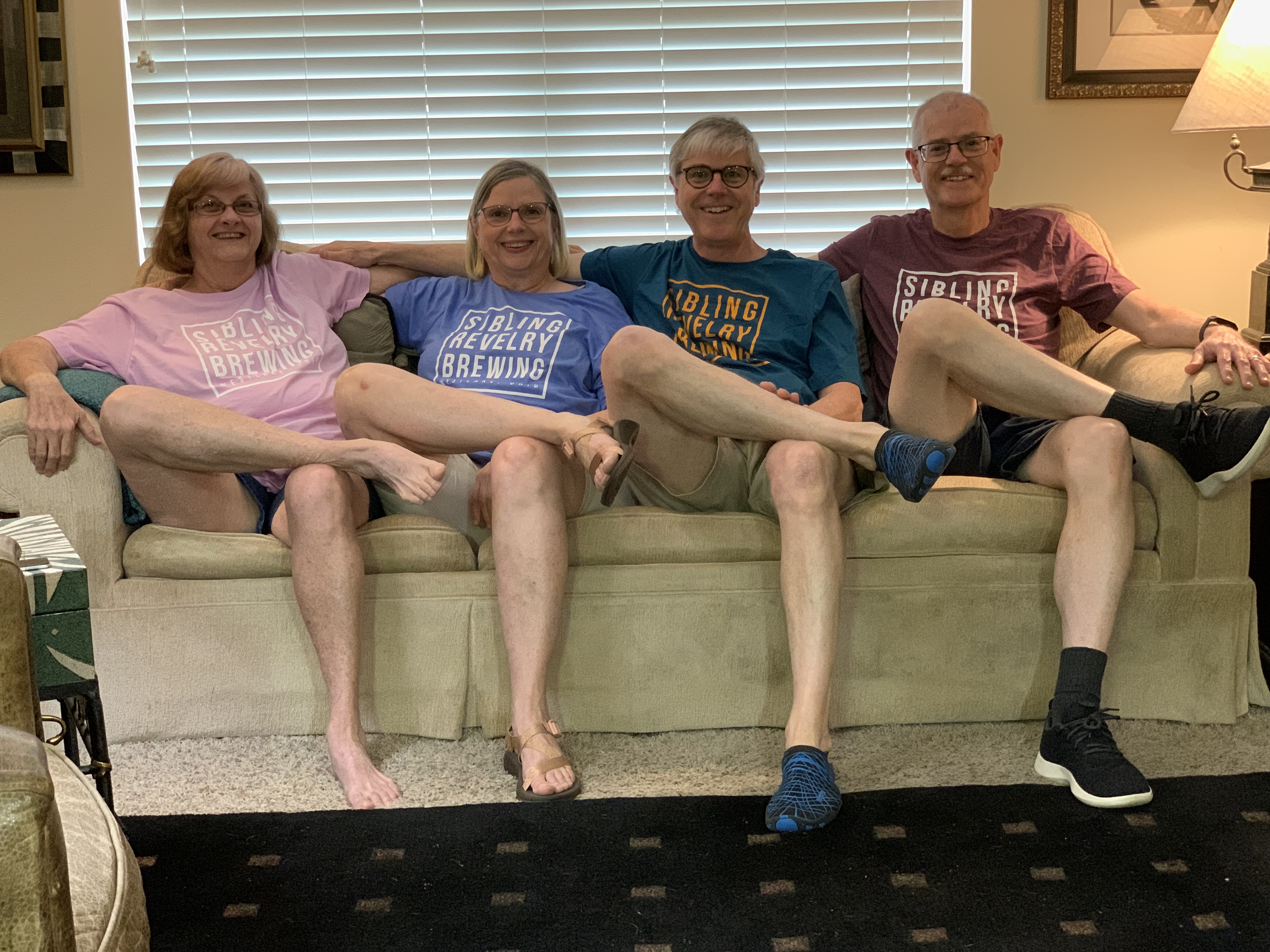 …but in the end, decided the best one was of us standing to show off the cool beer t-shirts our brother had gotten us for the occasion. While we always arrange ourselves from left to right by oldest to youngest, I realized we were also posed by shortest to tallest, the reverse order from when we were growing up.