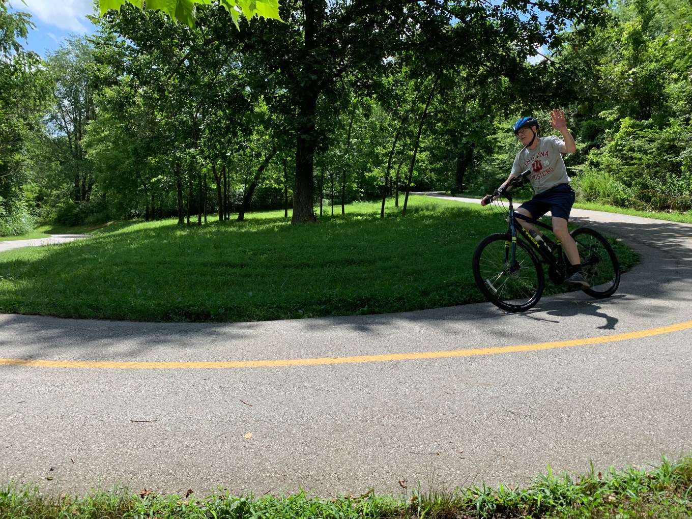 The paved trail even included center line stripes that turned solid when limited view made it dangerous to pass, just like on an automobile road. The trail wound it its way mostly through trees.