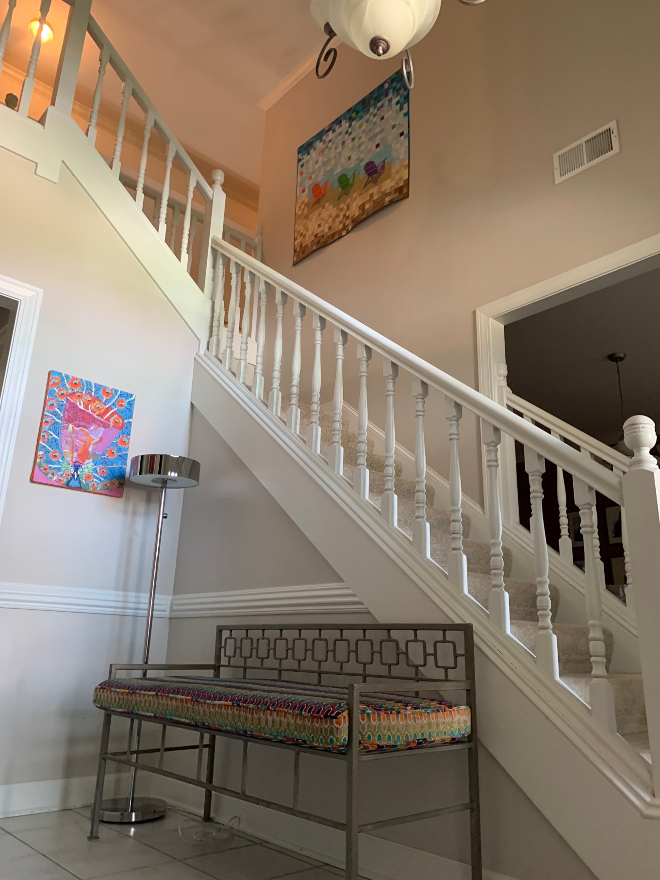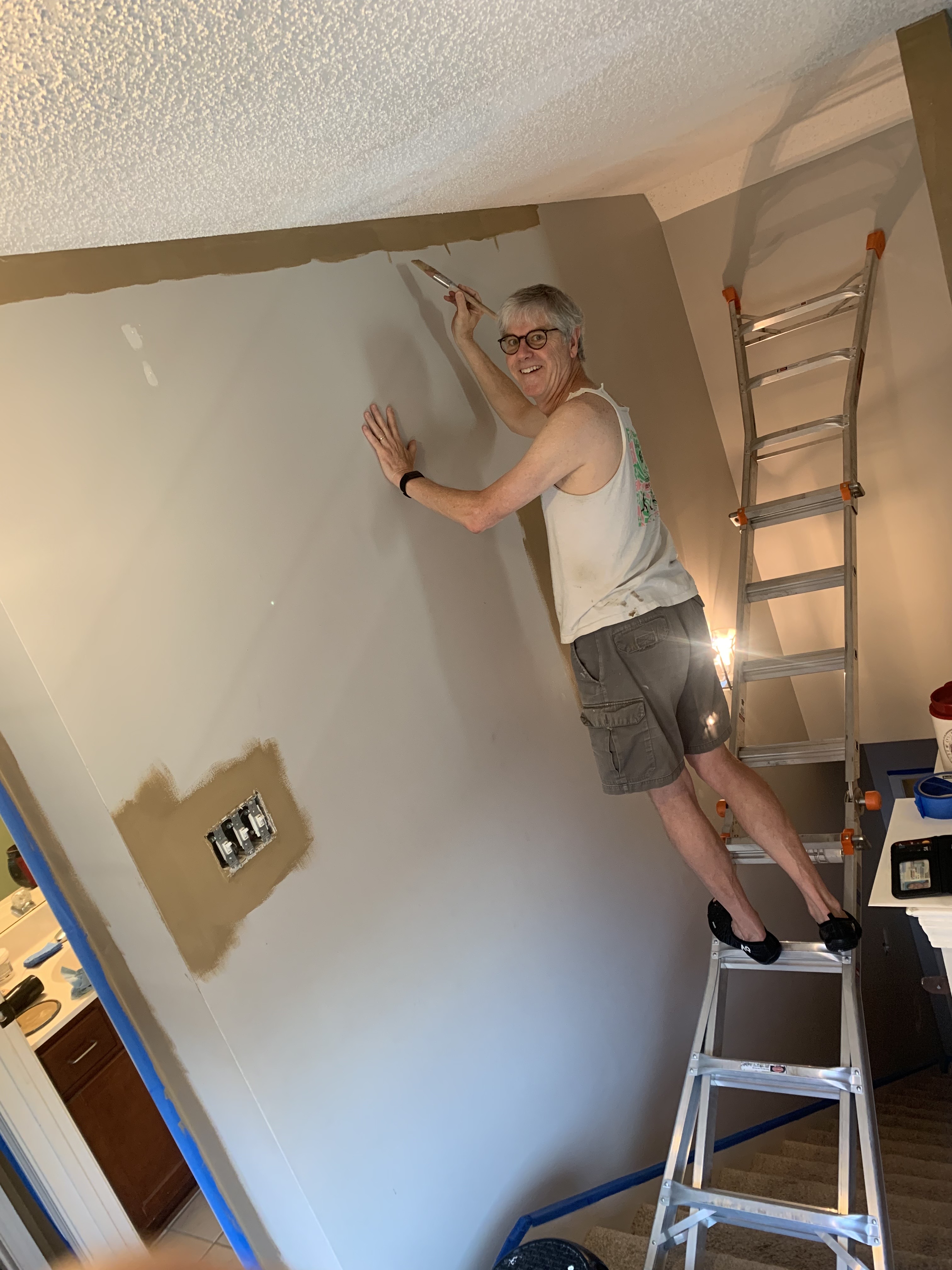 Now that I have tackled painting the most challenging rooms in their house, future projects will be much easier. And I know there will be more as my son said even before I finished, you know we’d like to paint our bathroom next, which also has a 20-foot ceiling (but no stairs). And then there are two downstairs hallways in need of repainting. Good thing I love to piant!