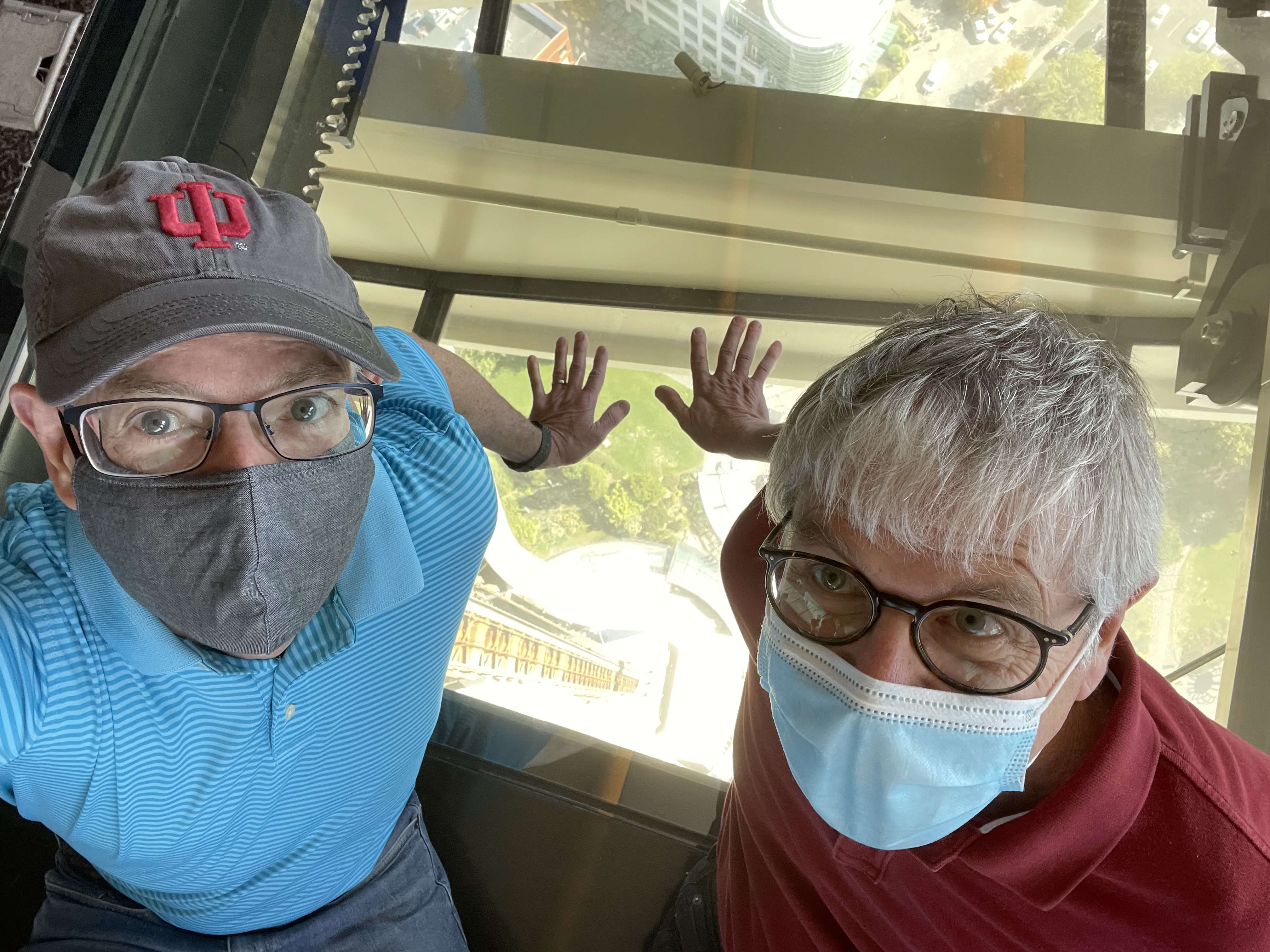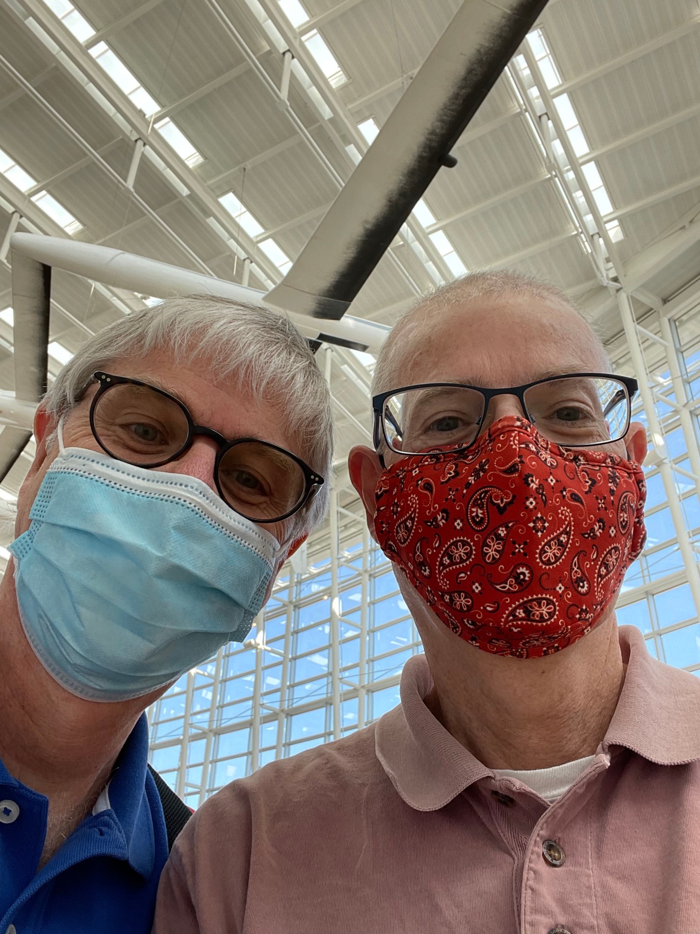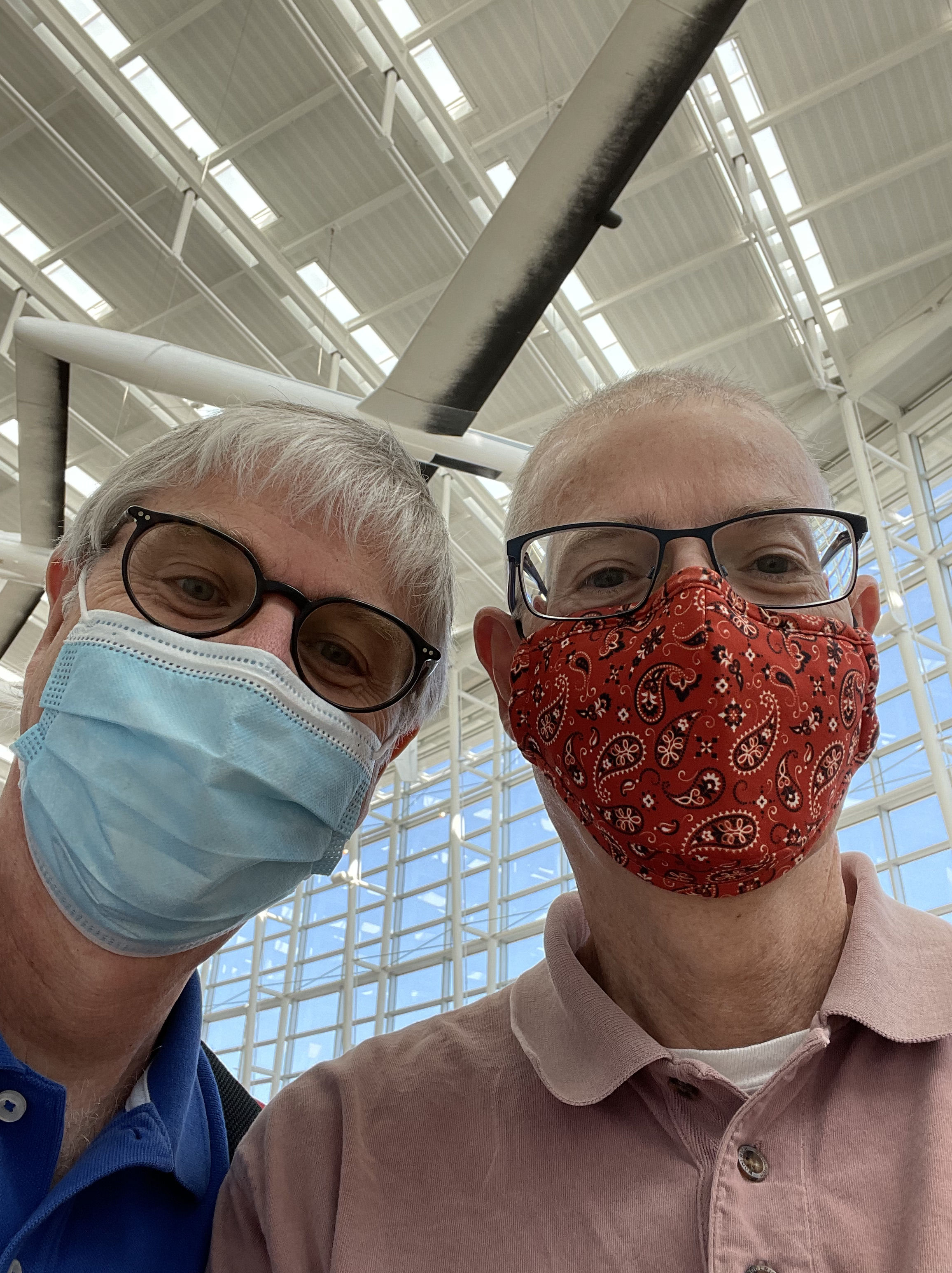It was too early to check into our accommodations and so we drove over to my daughter’s house to surprise my two grandsons for a short visit. With my grandsons not being eligible for a vaccination yet, we safely limited our visit to outdoors on their porch and backyard. Then it was off to check into our condo.