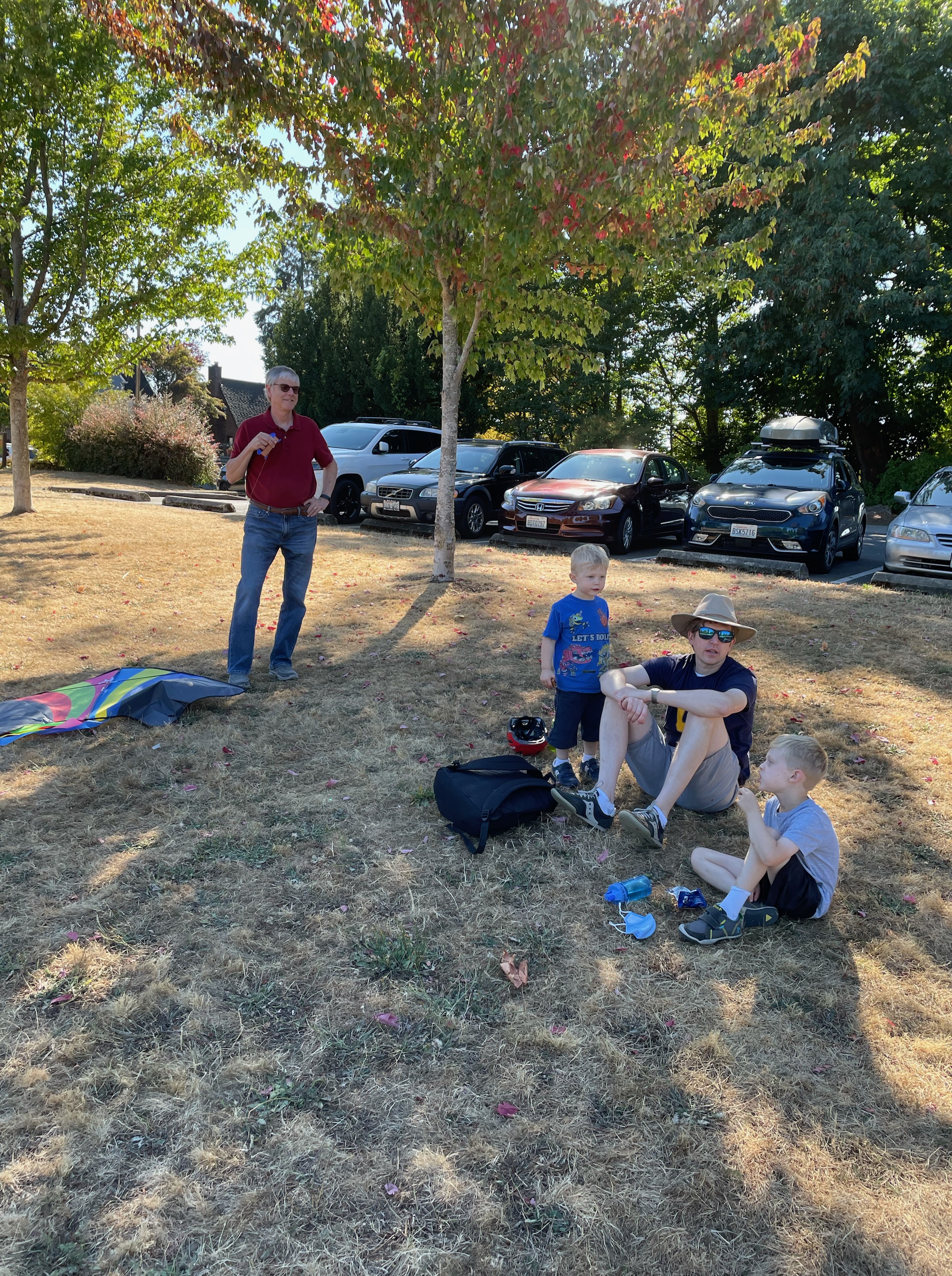 Monday being Labor Day, we took the day off from our “work” and spent a relaxing day with my daughter and her family. In the afternoon, we took the boys to a nearby park where having enjoyed flying a kite with my granddaughter earlier in this year, I tried to have a fun session with my oldest grandson. Unlike the high winds at the Gas Works Park, the wind here would not cooperate.