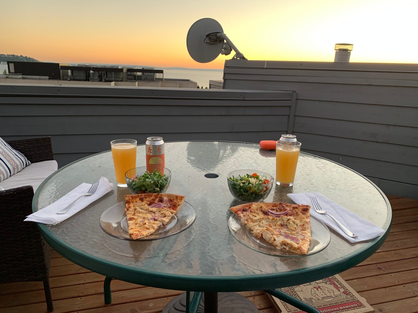 That night, being our last full night together, we decided to pick up pizza and enjoy some of the local beer we had purchased at the grocery store while watching the sunset from our rooftop deck. Picture this lovely dinner view with soft jazz music playing from that small orange speaker while the sun went down. It was a perfect capping off for our visit.