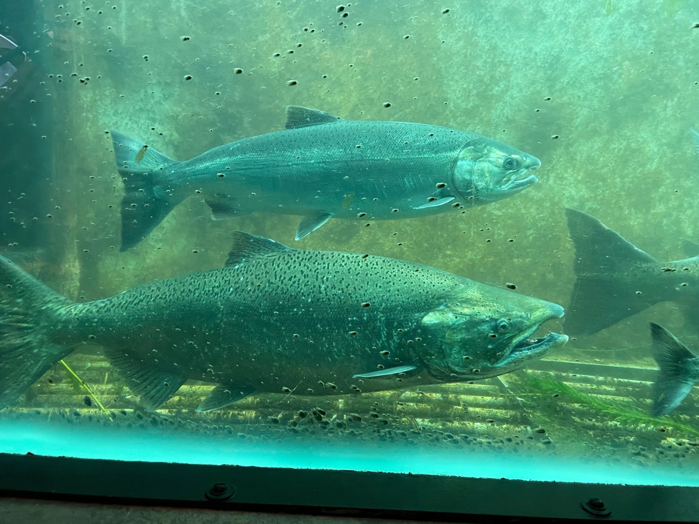 Inside is an underwater glass window that you can see them as they make their journey up the ladder.