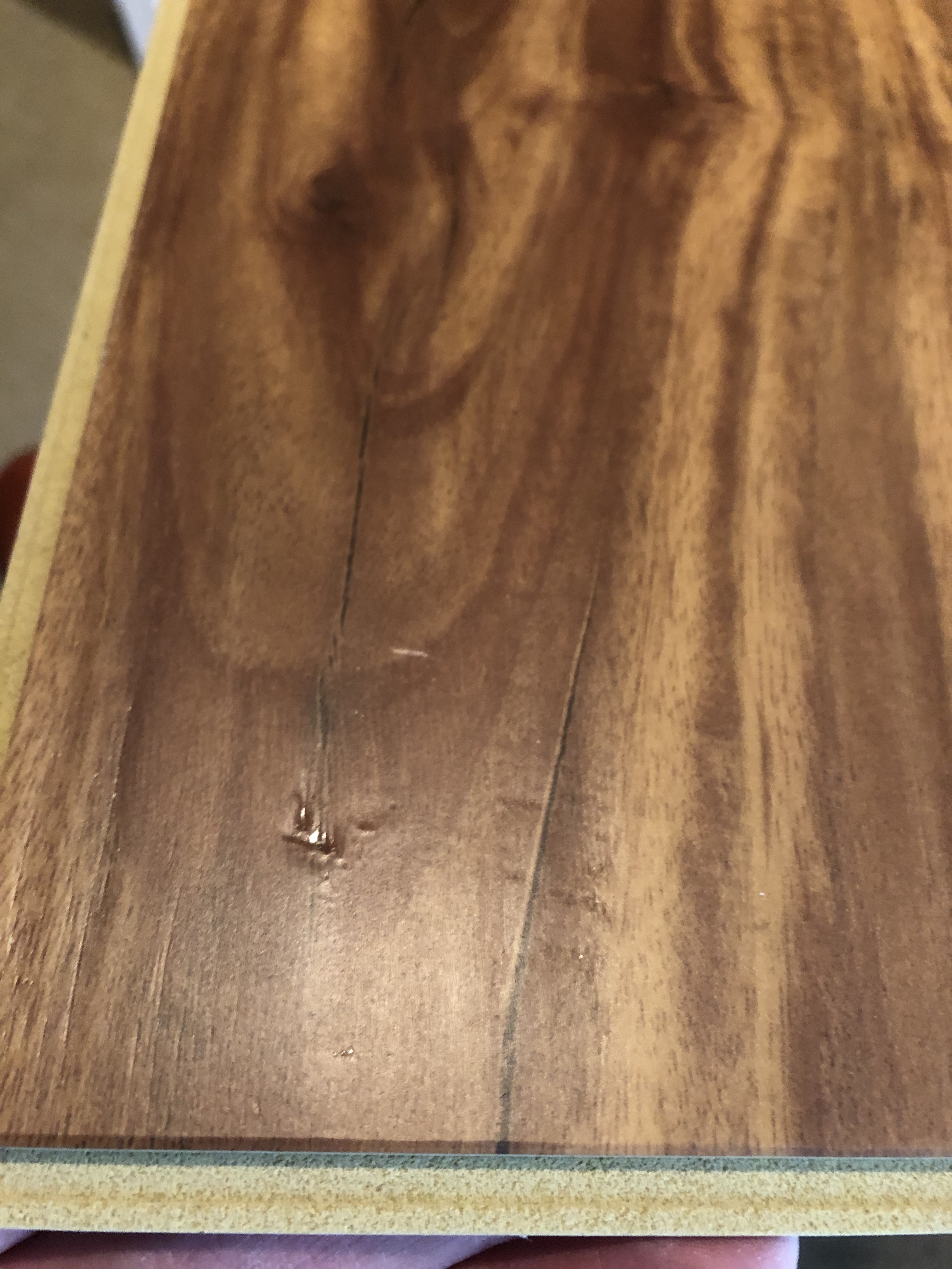 After we had discussed what looked to me like pockmarks on the floor planks (they were on nearly every one of the boards!), my brother agreed that they were, in fact, pockmarks on the floor planks and that using these boards for the flooring would look really bad.  My wife even wondered aloud, “If the boards look this ‘dented’ now, what will they look like once hard-soled shoes begin tromping on the bathroom floor!?”