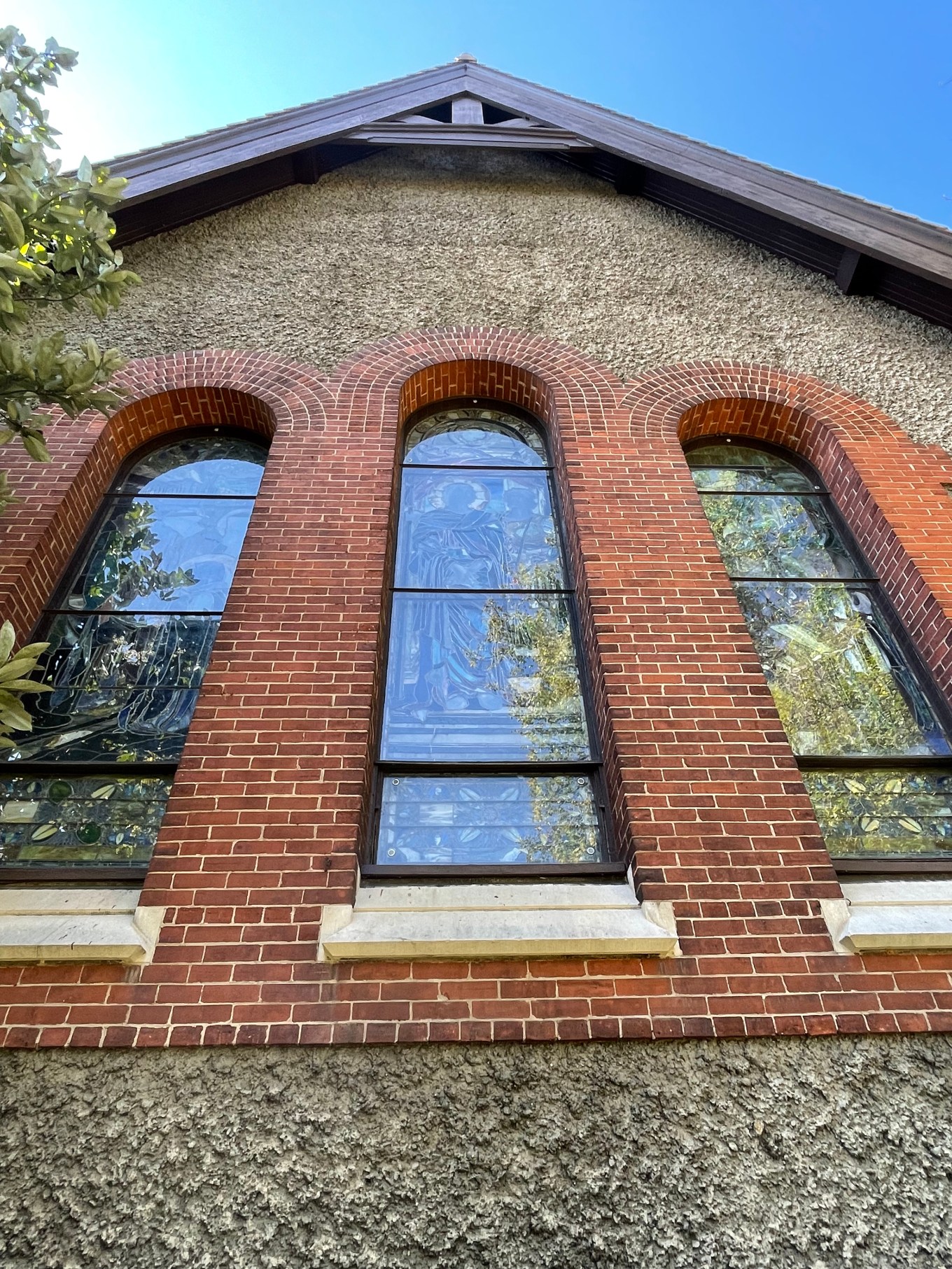 Our second day was our Asheville day where we started out at Biltmore Village, the town built by George Vanderbilt near his mansion. After a delicious lunch, we strolled over to the church to see the beautiful stained-glass windows honoring different Vanderbilt family members, only to find it locked. The sign on the door said the sanctuary was only open to the public Wednesday through Saturday so our pictures were of the windows from the outside rather than the inside.