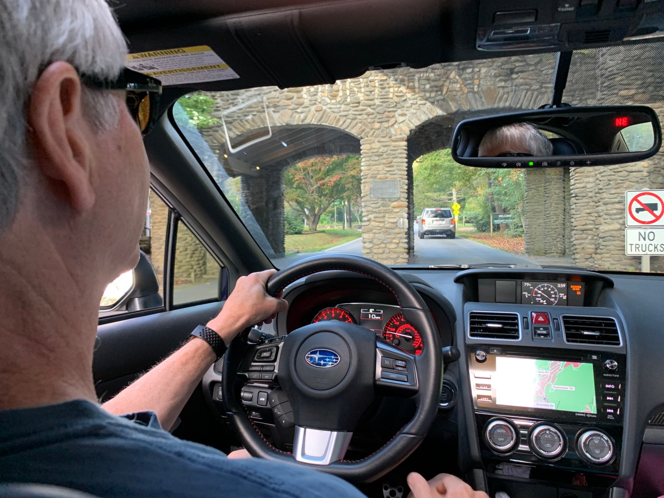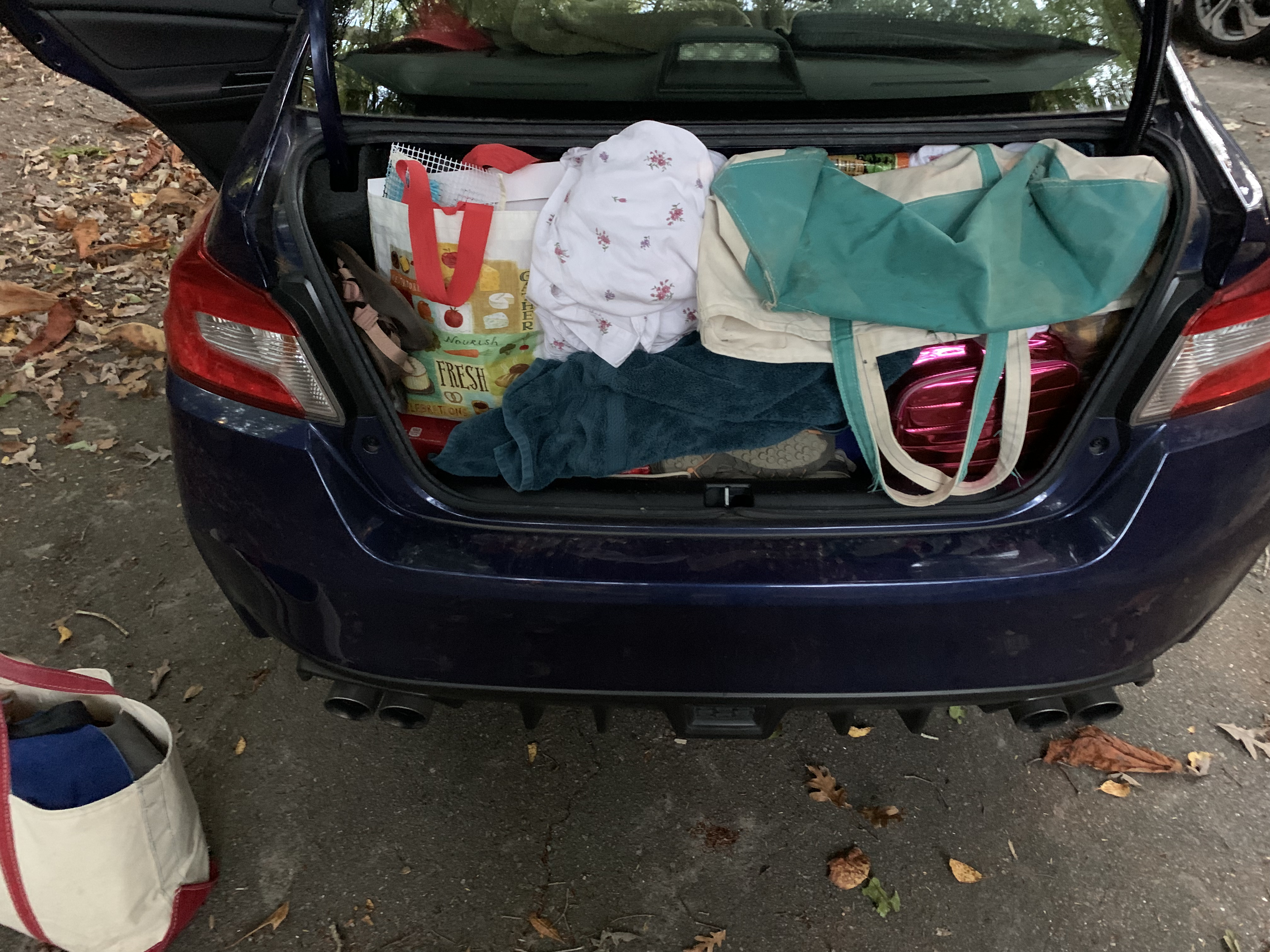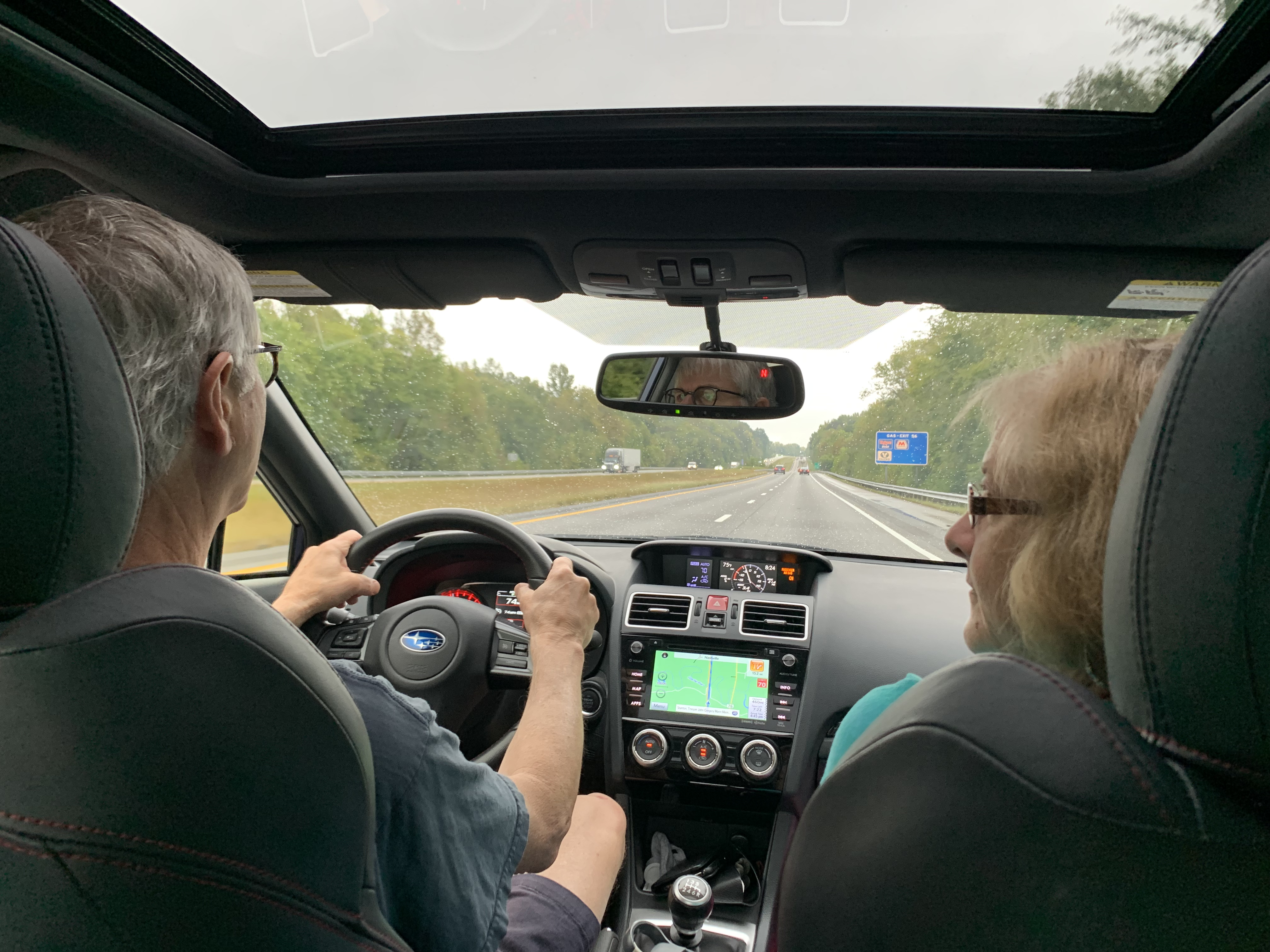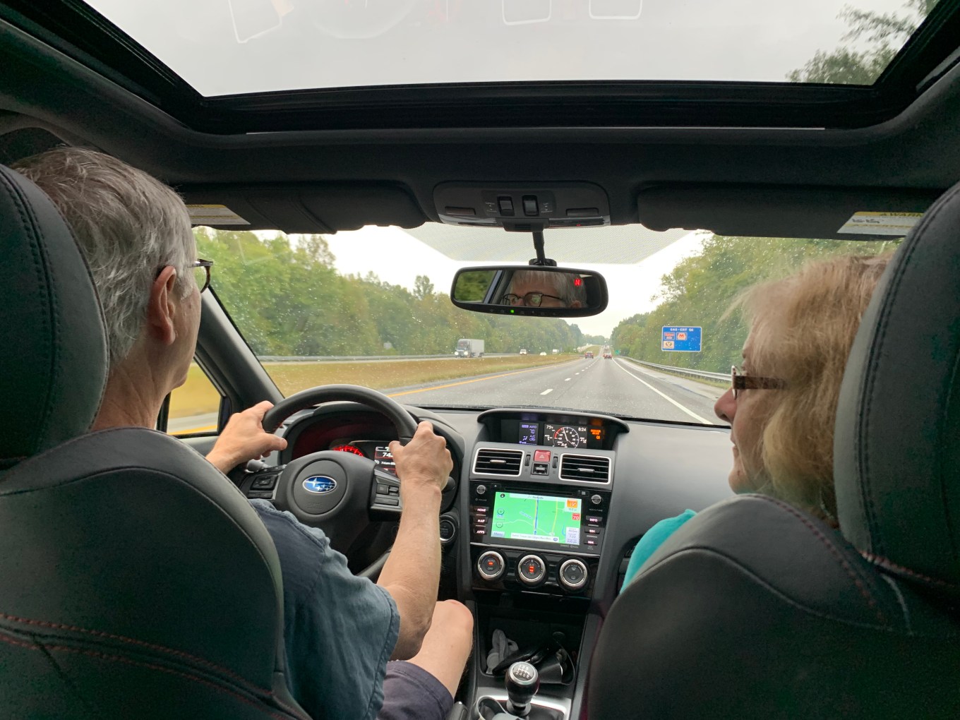 My two sisters drove over from Arkansas and on a Friday morning, we loaded up my car and headed to Montreat. With all of our luggage, we had just enough room in my Subaru WRX for the three of us and my sister’s dog who was making his first trip there.