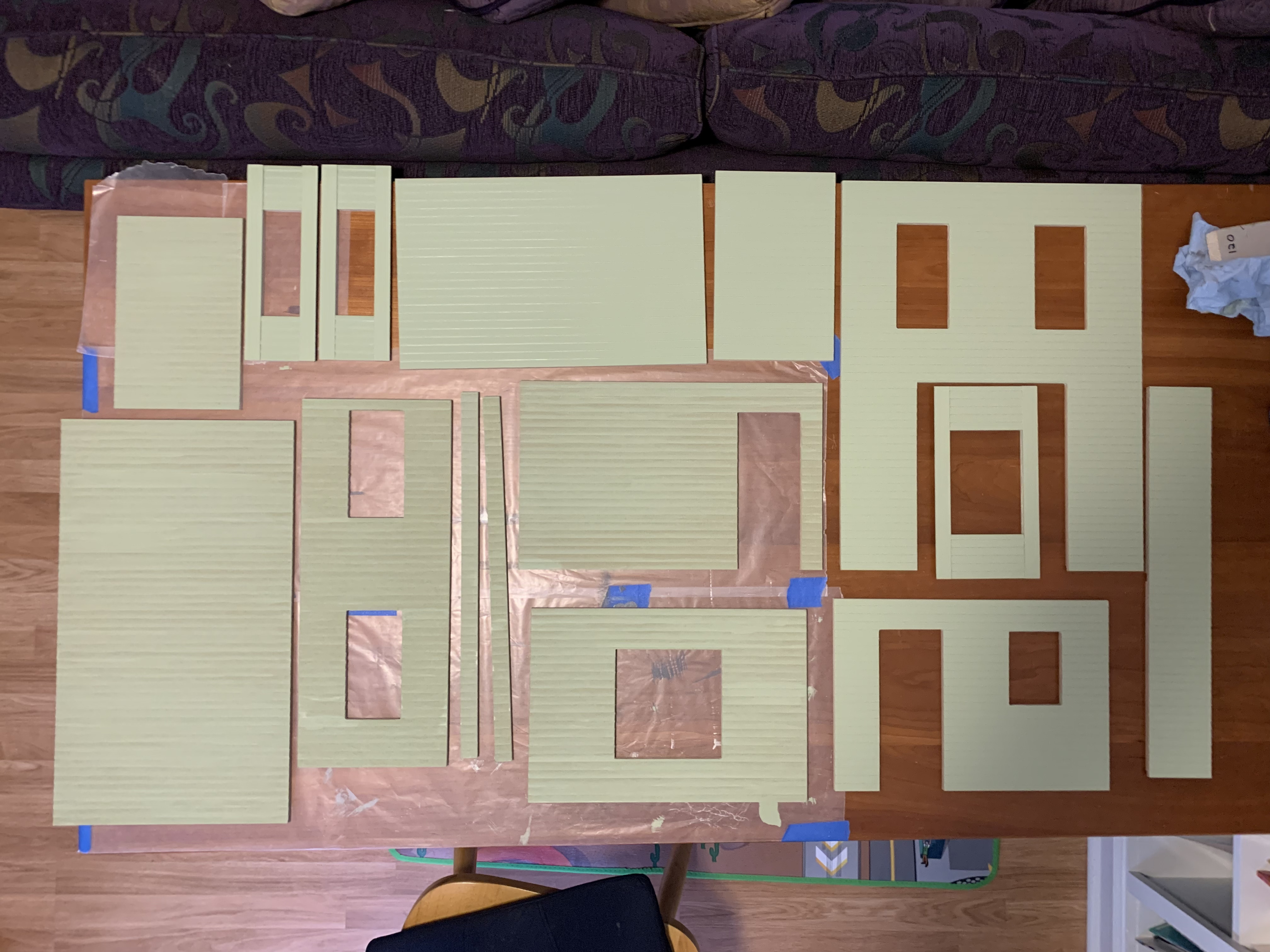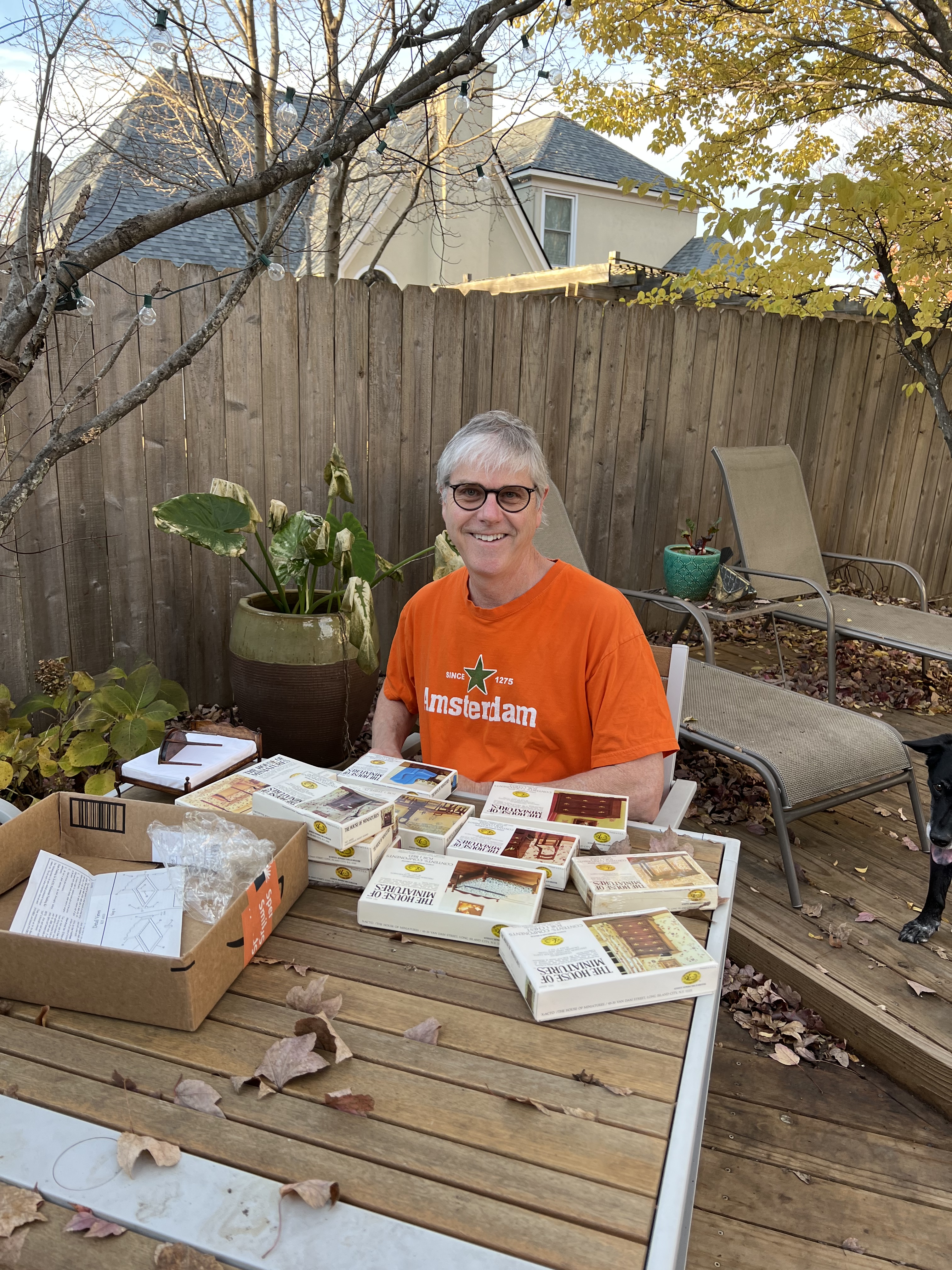 My sister got busy too and found some vintage (circa 1978) 1/12-scale furniture kits online. The day the furniture kits arrived in the mail, my sister started a series of texts about how we should get started. I could tell she was most excited, and she even commented that she was not only building this for her granddaughters but for herself as well (an aside, my sister had four boys, so she never got the chance to do this for her kids). My sister, being an artist, said she wanted to pick out the interior and exterior color schemes, to which I readily agreed. She thought it would be easiest if she drove over to do that, but we could not make it happen before Thanksgiving. So, in order for me to go ahead and get started, I told her if she just went to her local hardware store and picked out paint chips for the exterior walls and trim, I could get started before she drove over.