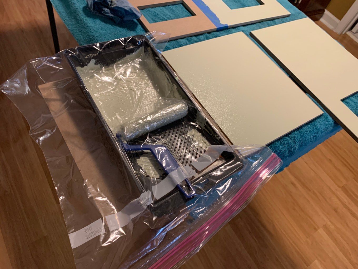 At my sister’s suggestion, between coats, I wrapped the roller in plastic wrap, and I additionally put the tray and roller inside a sealed plastic bag.