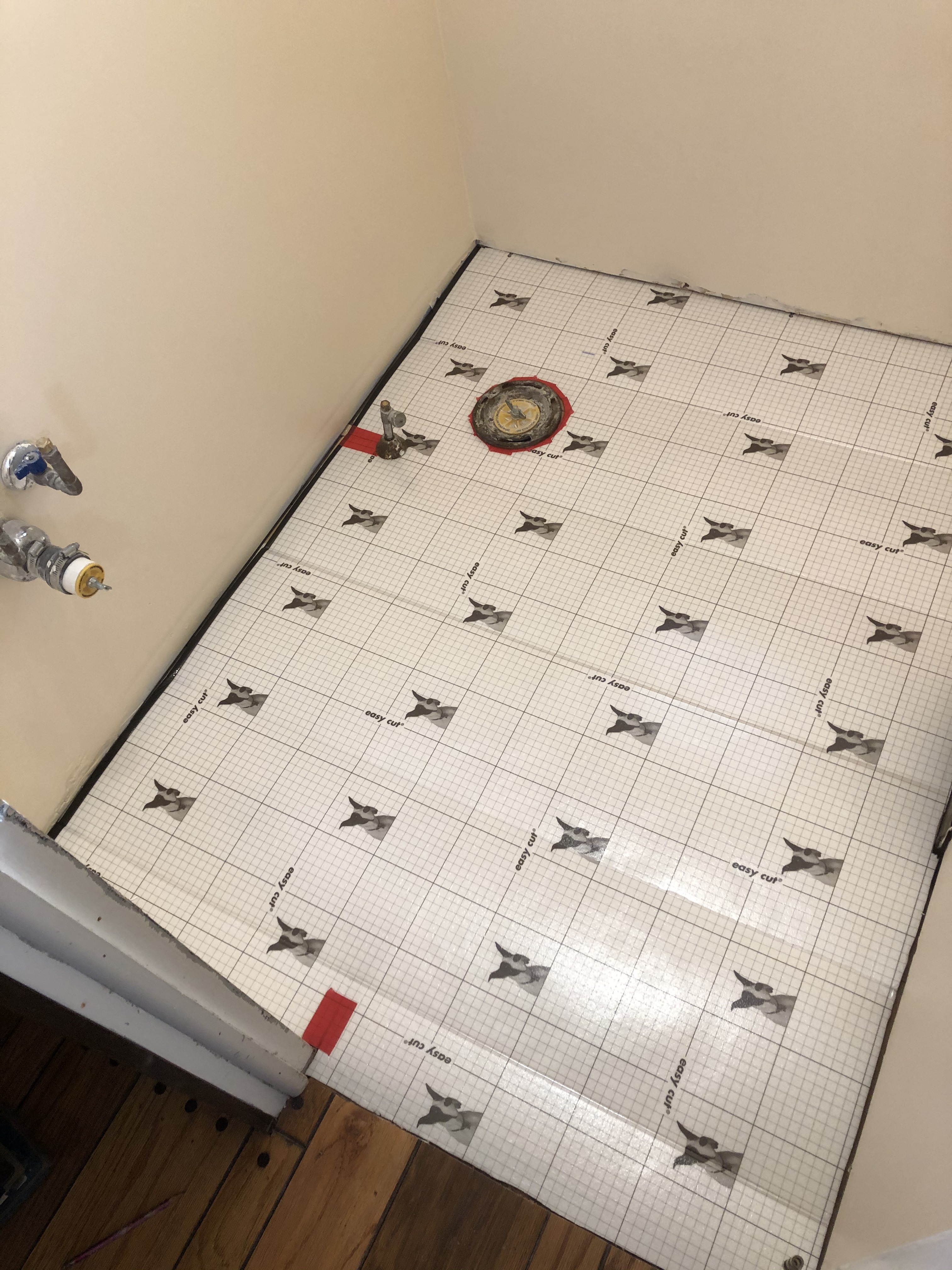 Our previous installment of this virtual DIY project left my brother with newly painted walls and bare wood beneath his feet.  In a way, the subflooring was a blank canvas upon which he would “paint” a new bathroom floor.  More FaceTime calls and several text messages afforded me the chance to provide further assistance on the project, again best told in my brother’s words.