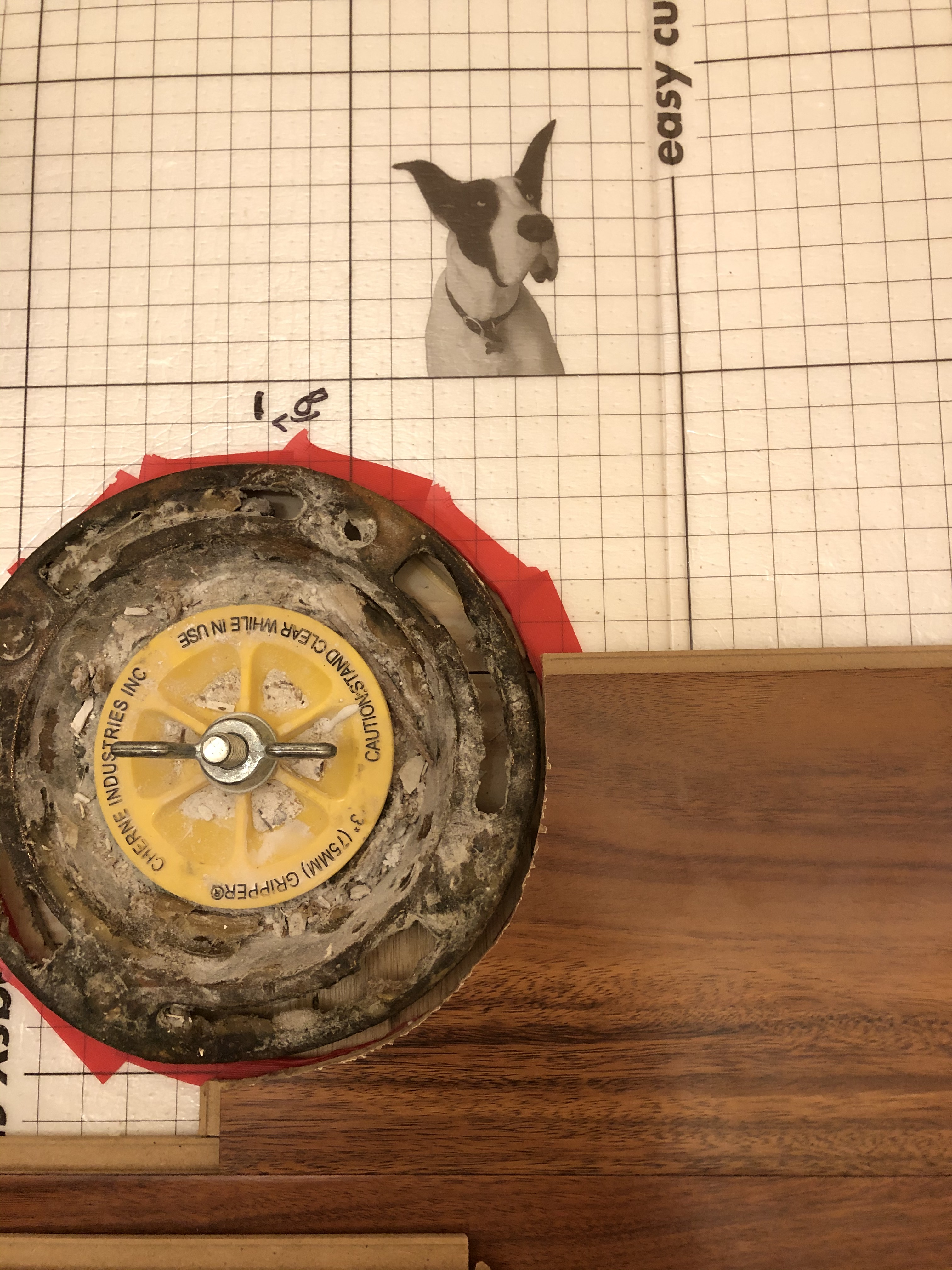 I would suggest making that piece longer, so you don’t have to cut four boards. Just two. Or did you want to do it that way? An idea. Cut a piece of newspaper to the size of the board. Then lay it down and cut out for the circle with scissors. Then lay the paper on the back of the board and draw the cutout on the board. Then you have a line to cut with the jigsaw. This is how I did unusual cuts on the tile in our bathroom.