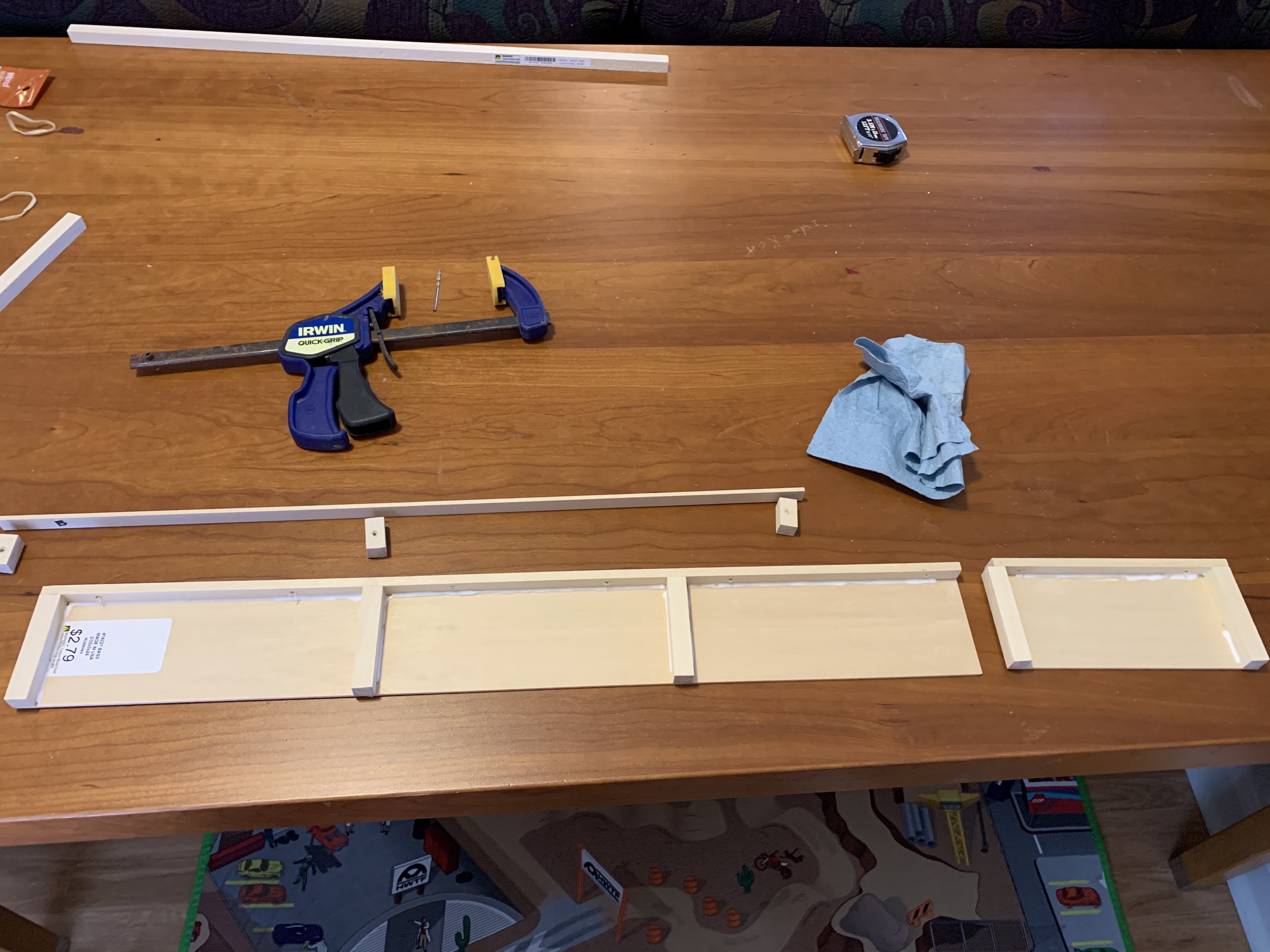 After my puzzling season was over, I decided to fix this problem before I put my puzzle table away for the year. I looked into solid wood and plywood extensions but in the end decided that the easiest material to work with would be precision-cut modeler’s bass wood. Looking at the different thicknesses and widths the bass wood came in, I figured a 3/32” thickness would provide a nice smooth surface with enough rigidity to provide adequate support. I then chose ½” and 1” strips with which to brace it.