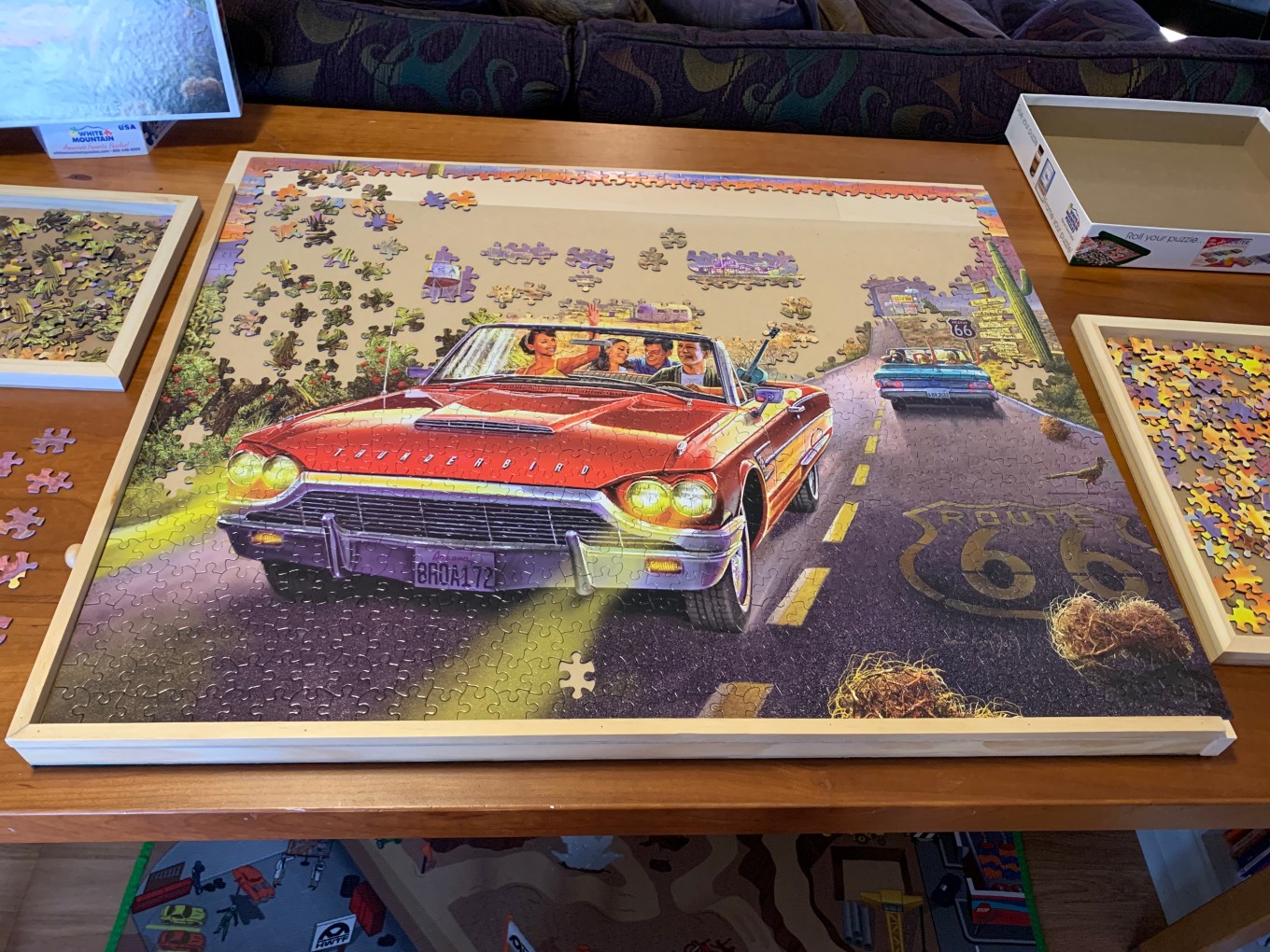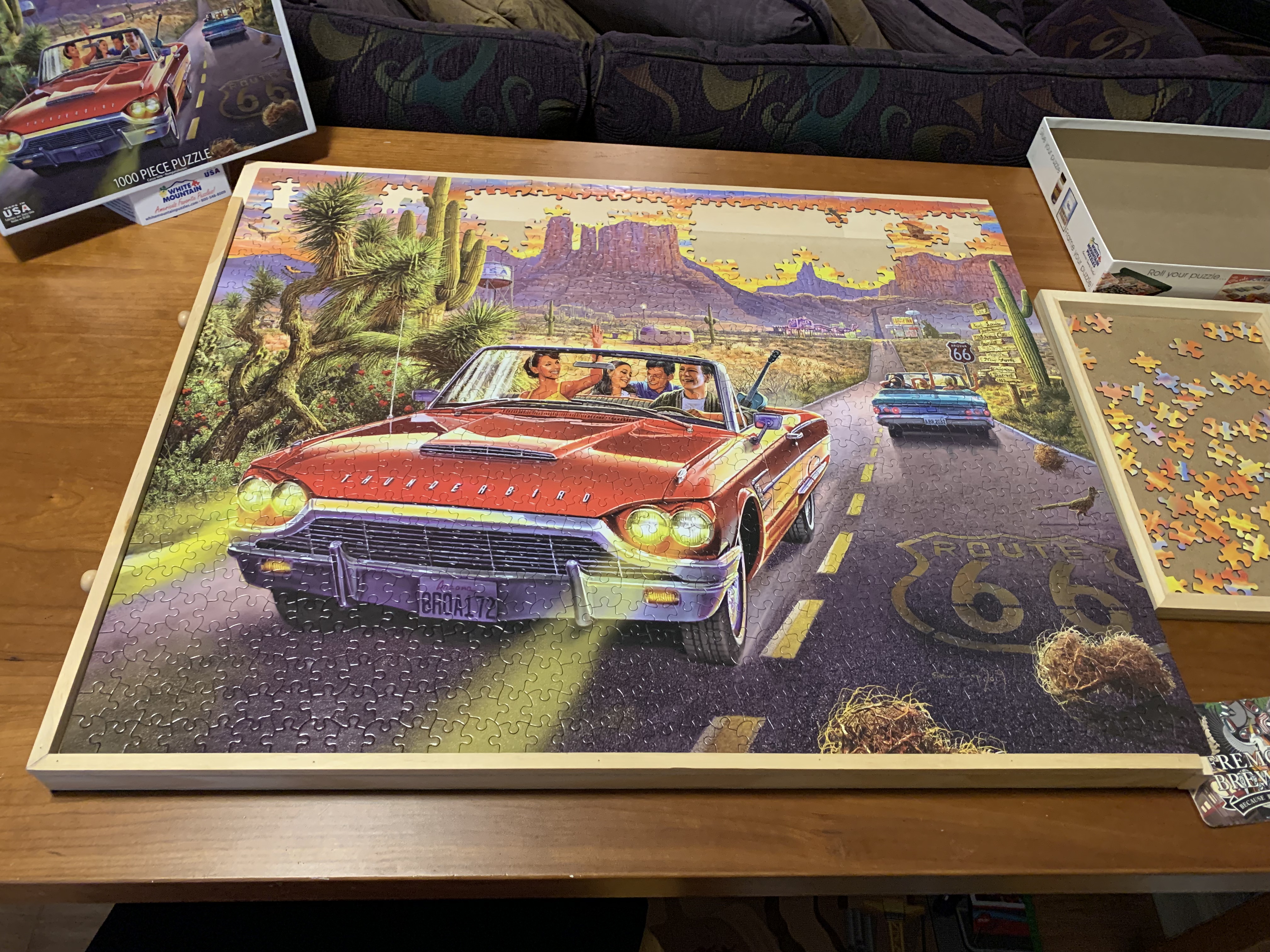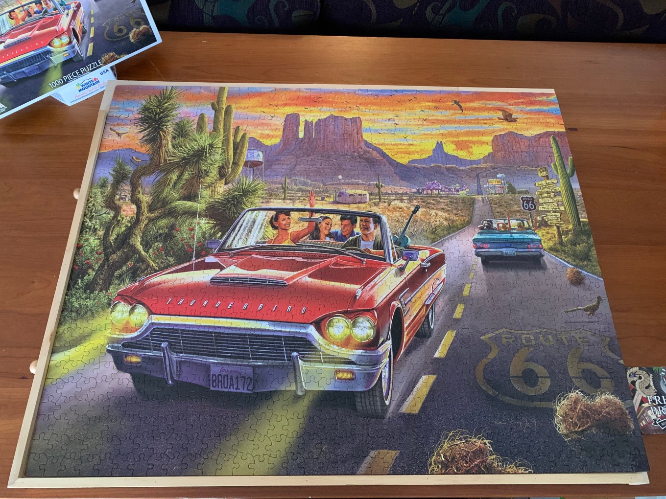 This year, my puzzling season started three days before Christmas. After putting away my puzzle table at the end of January 2021, I did locate and purchase three puzzles for my next puzzle season, all with themes of interest to me. And having recently driven on part of the old Route 66 on a trip out west, I decided to start with the one that reminded me of the long vistas my wife and I saw on our trip.