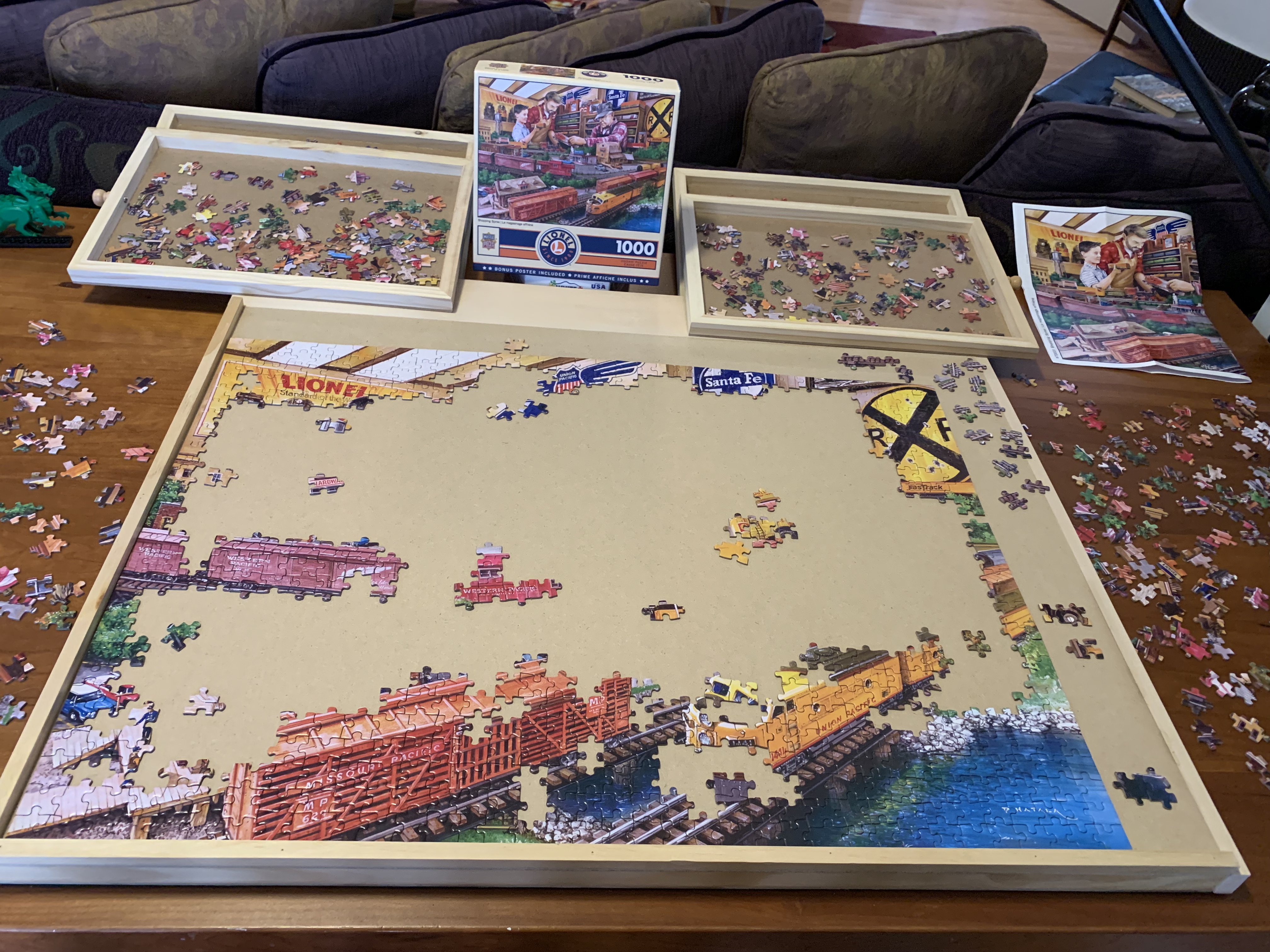 These are beautiful puzzles, David. I enjoy doing puzzles, too, but I like the 300 piece size best. I used to do puzzles with my mom (who is now 99). We started with 300, then 100, then really small ones. I felt it was really good for her brain. I am wondering what you do with the final completed puzzle? Sometimes I glue them and then display them. Other times, I put the puzzle back in the box and donate it. Our library has puzzles to check out, too. As usual, I admire your thoughtful process to fix your puzzle board as well as to assemble the puzzles. You combine creativity with analytical methods to solve the problems – just as your blog byline says!