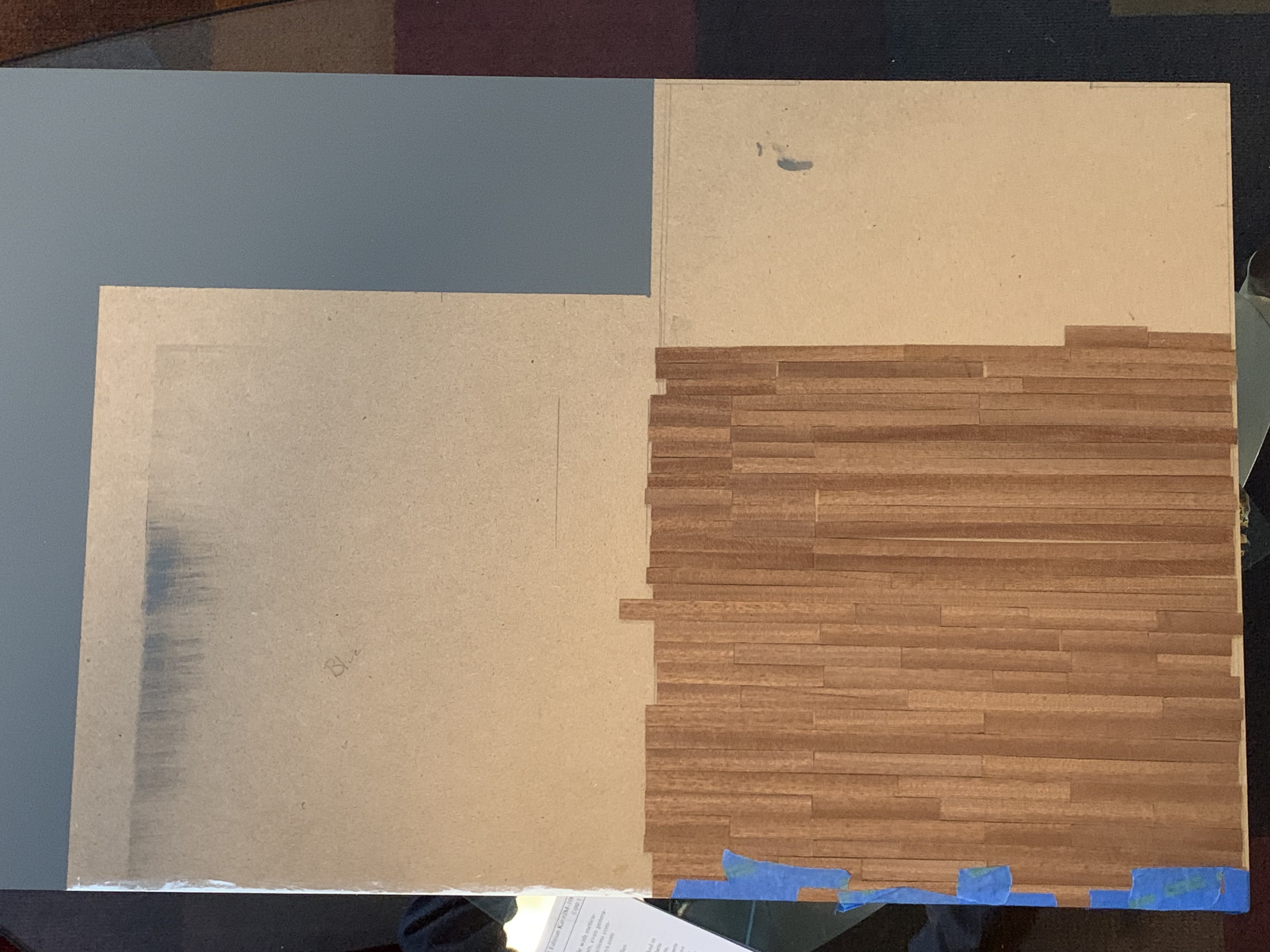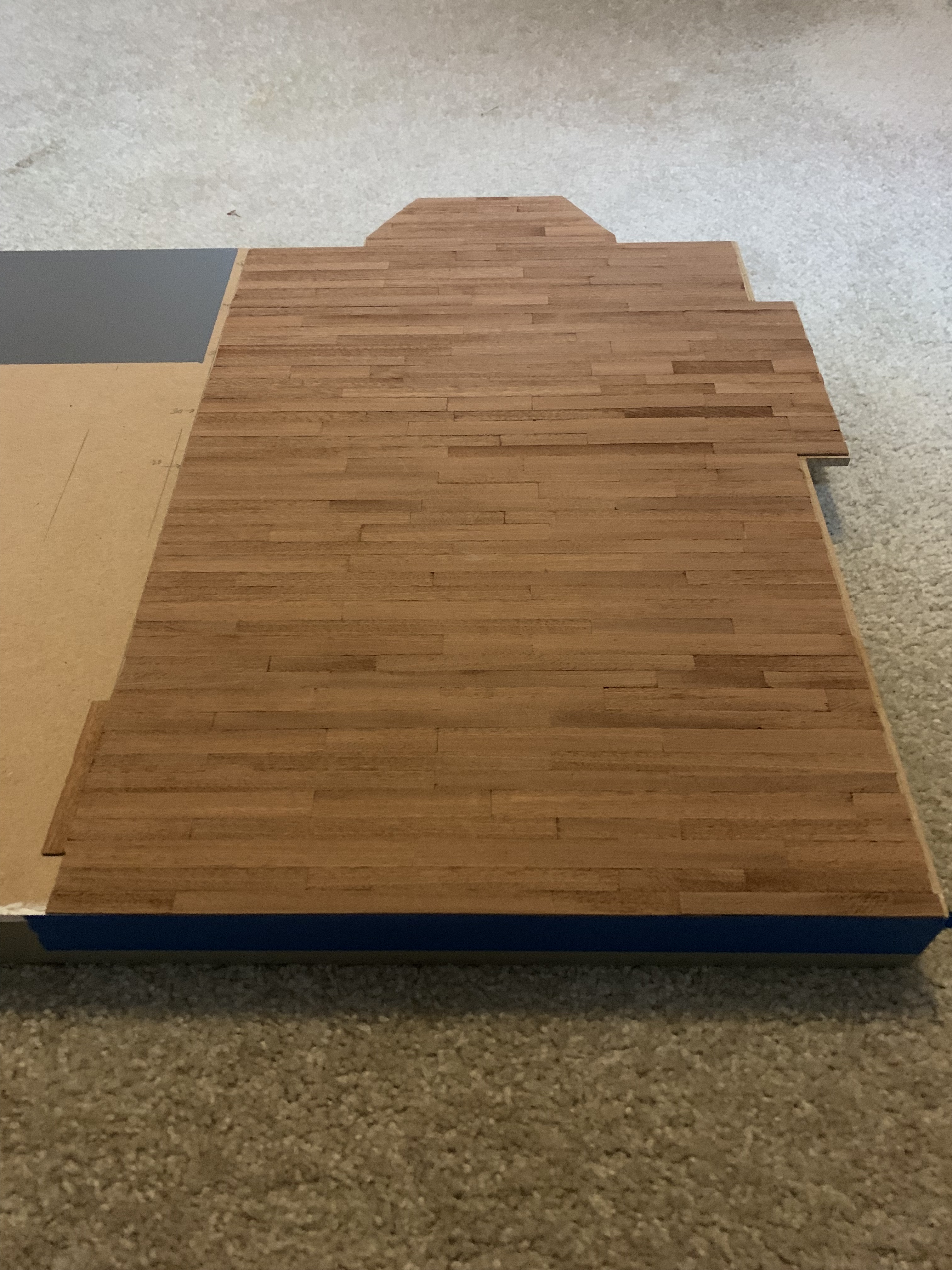 I continued working with the hand cut strips of wood, having to occasionally sand them to correct for any imprecision in my cuts, and once I had reached a total of 40 rows, I could see the end was in sight.
