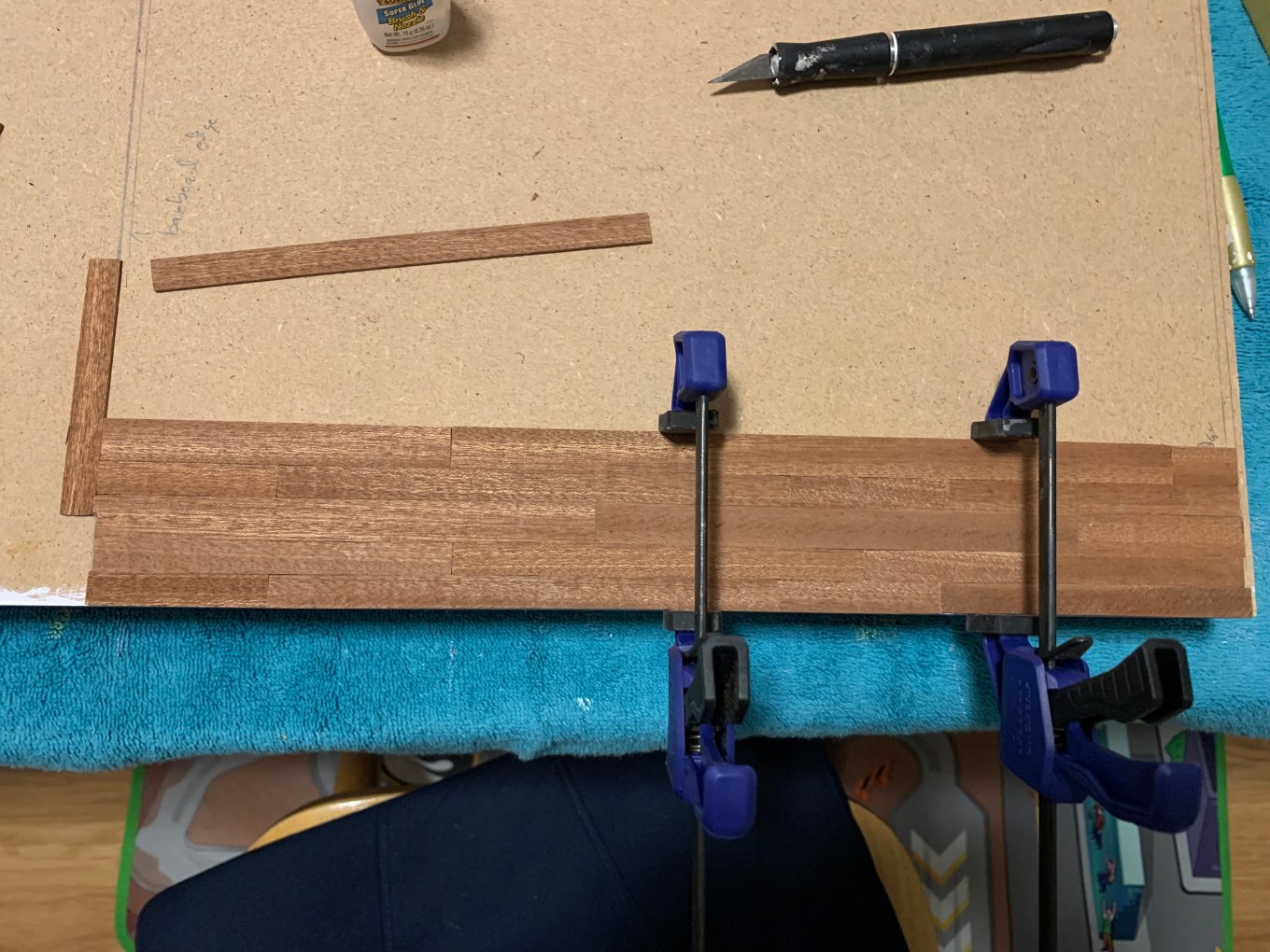 After that, I found I could lay my sanding block on the far side of the strip I was gluing and pull towards me to ensure a tight fit.