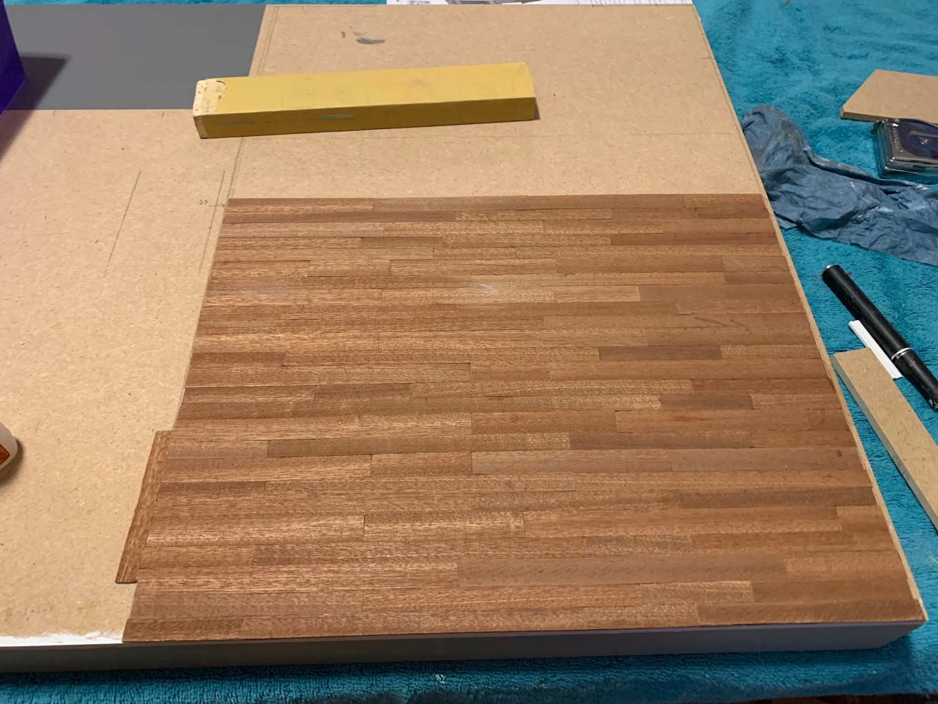 David, the floor is absolutely beautiful. Your attention to detail is inspiring. I am sure your sister is thrilled with this floor. I wonder what subject your sister taught her students where she used the technique of the cork-backed ruler with several cuts to cut the wood? A cork-backed ruler is a great idea. I look forward to seeing the other floors. Thank you for this post! It reminds me of the saying that I try to live by, “Any job worth doing is worth doing right.”