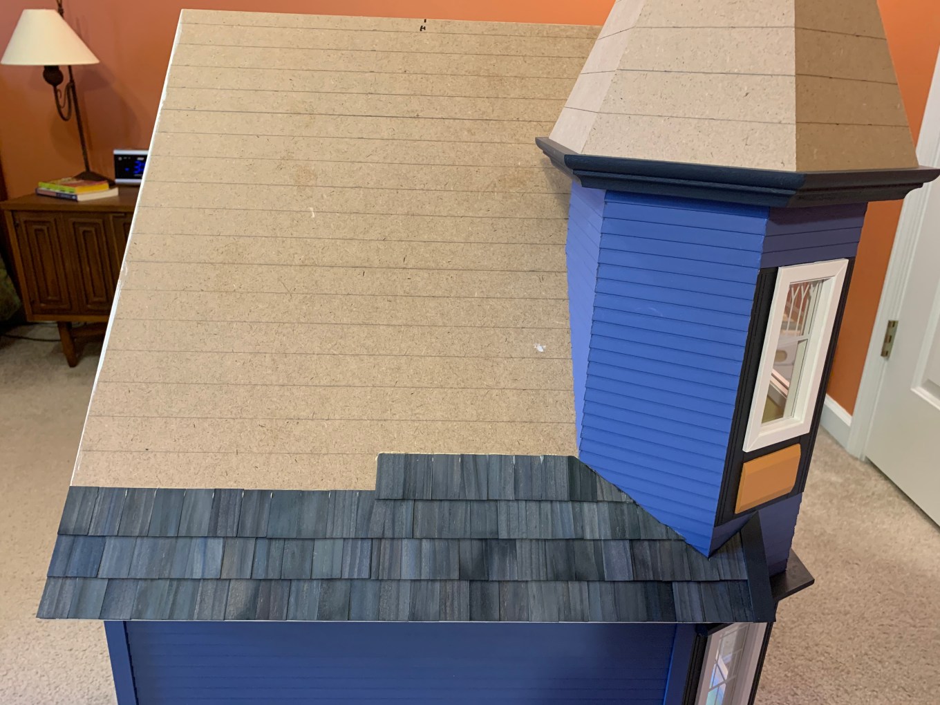 The attic and gable ends of this house had a false eave that required shingling. I knew I could do this again in my offline fashion and it turned out very nicely.