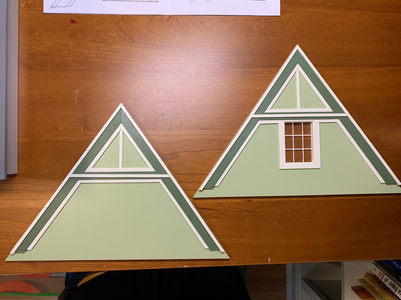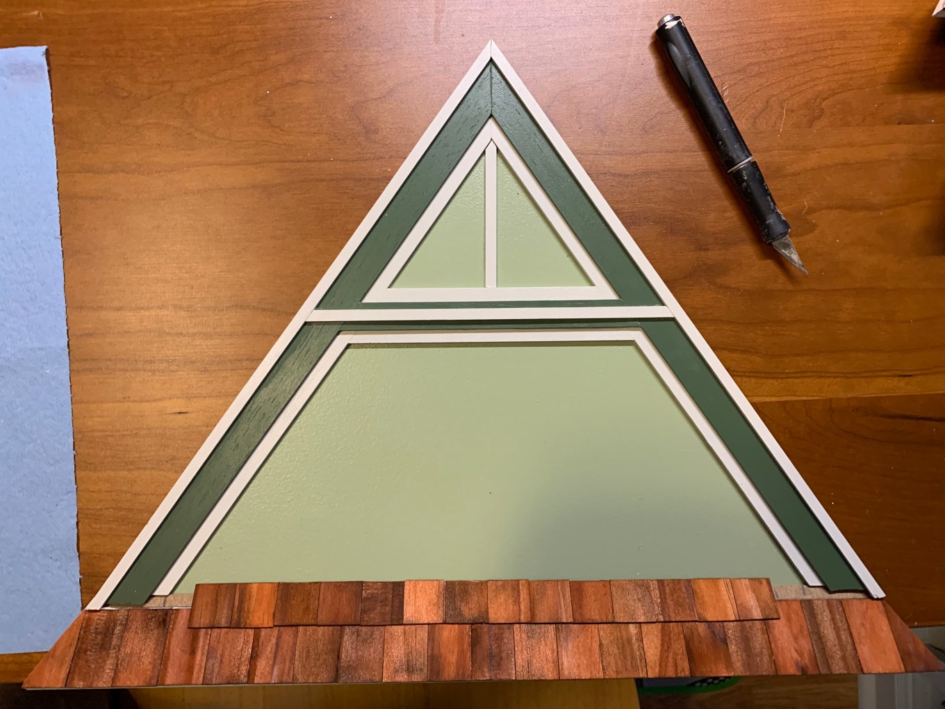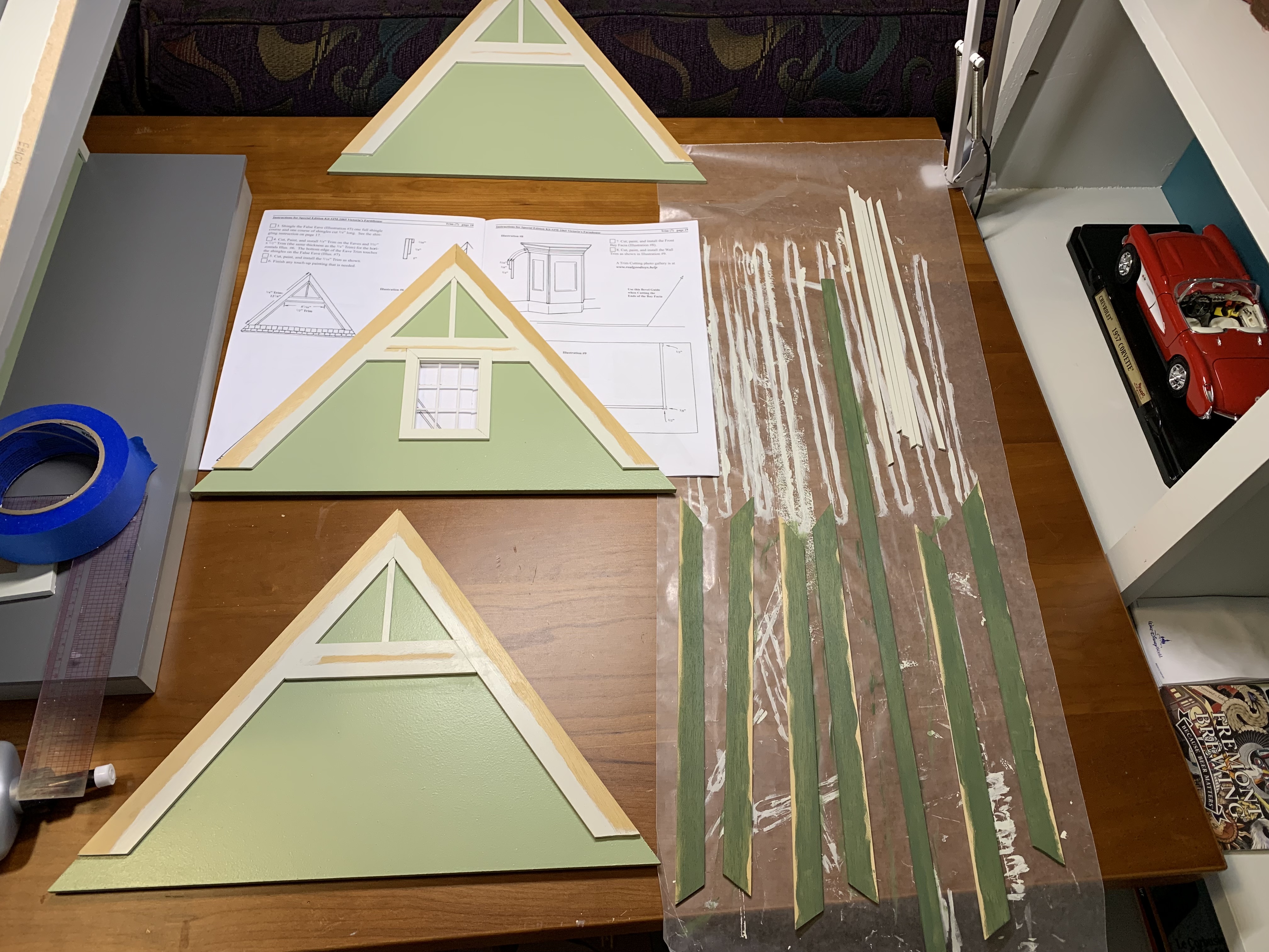 To this end, I taped together the top floor, walls, and roof pieces and explored what would be required. It seemed plausible but it really just meant that I would work ahead in the directions, sometimes completing steps well before they were scheduled. First up was getting the attic and gable trim pieces cut and painted.