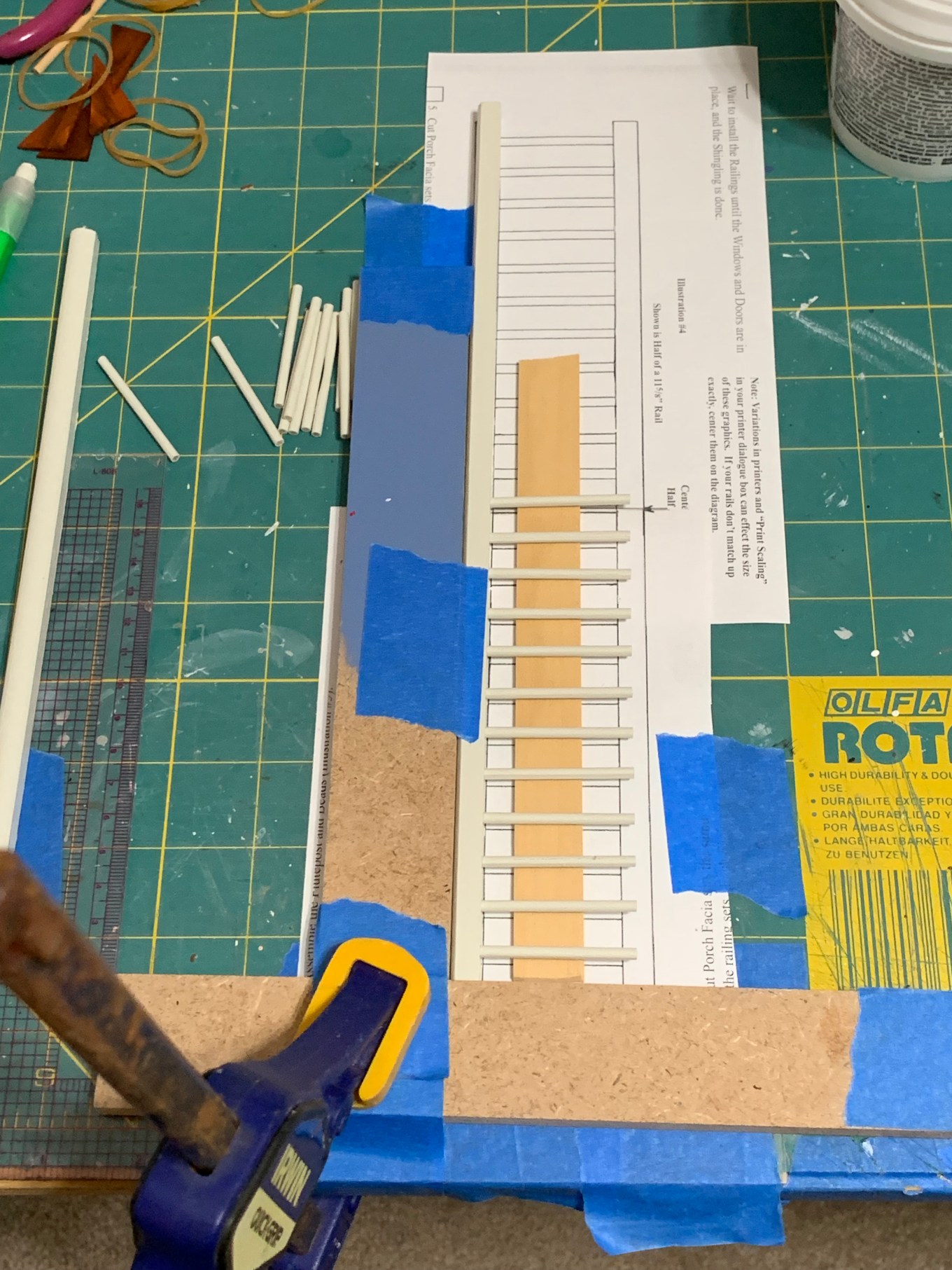 With those painted, the railings could then be assembled using templates included in the instructions before attaching them to the porch between the posts.