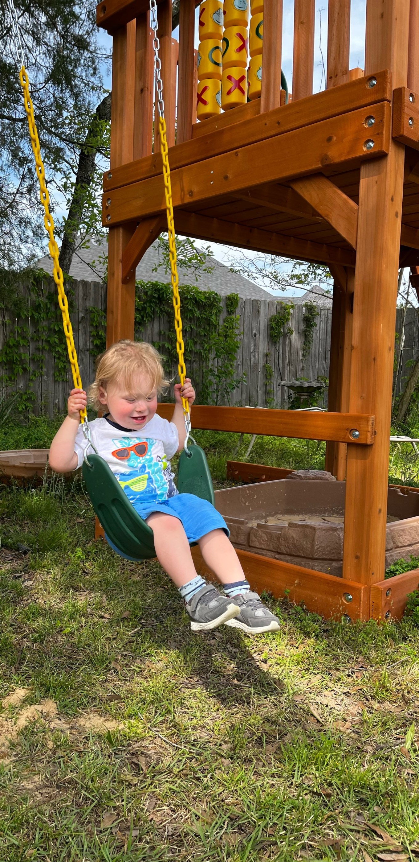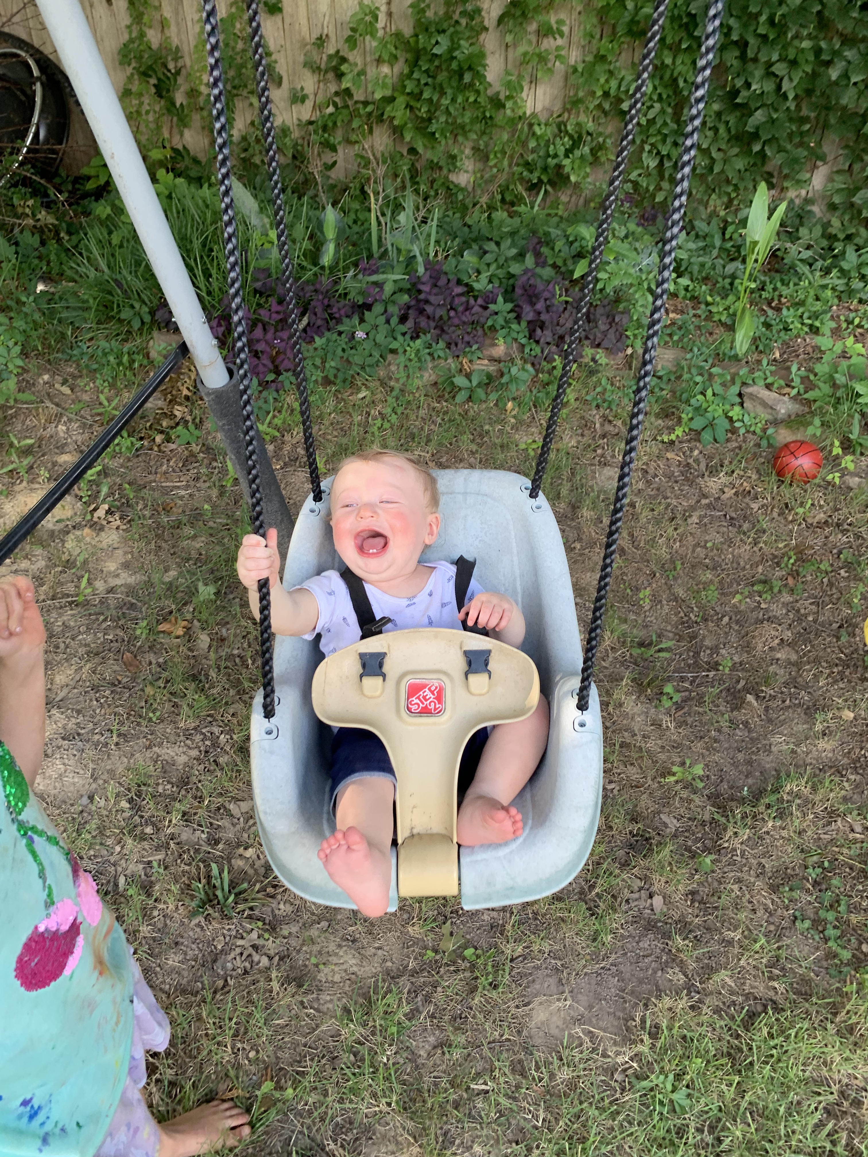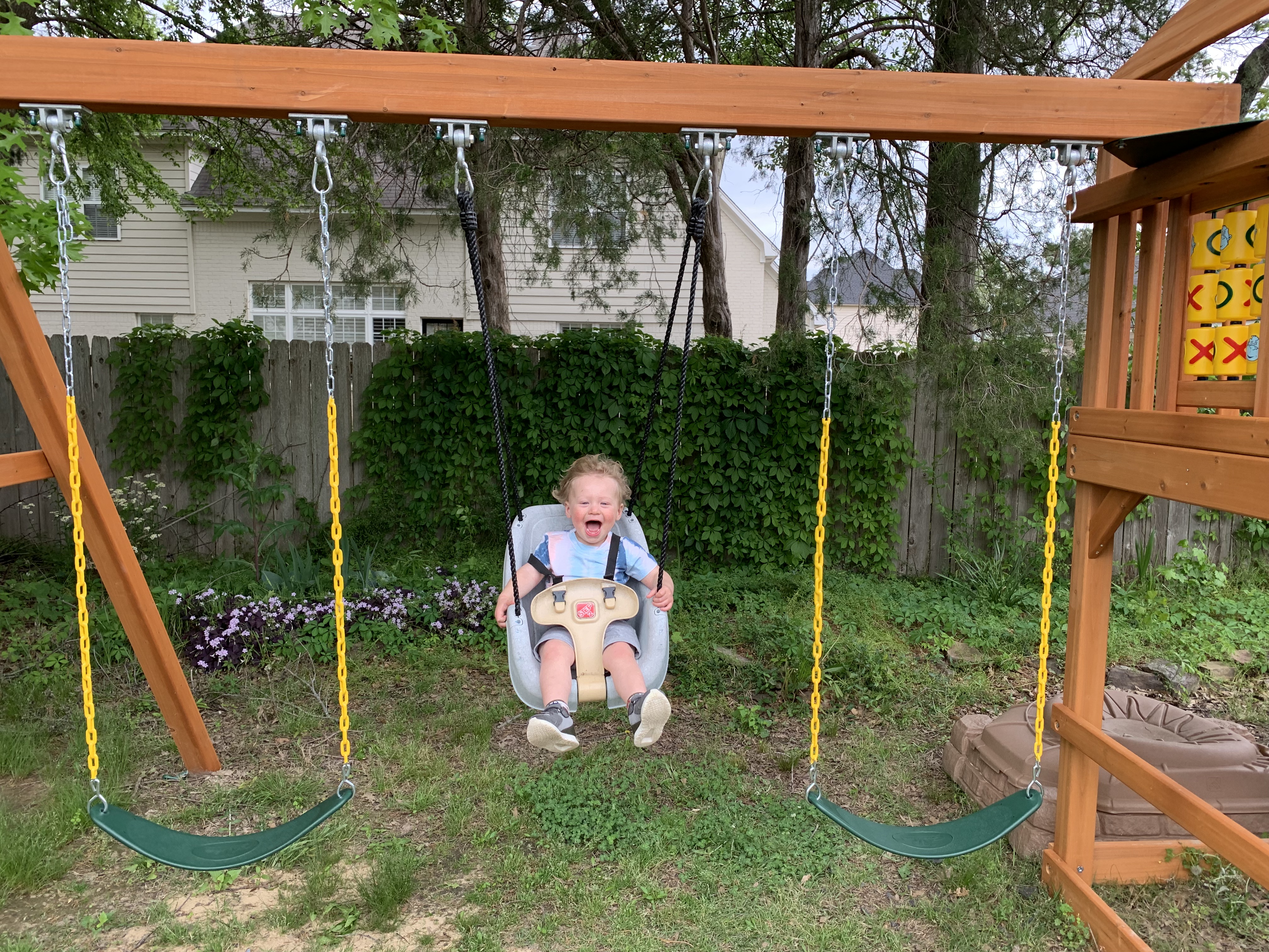 Now with such an upgraded play set, we just need to wait for our other grandchildren who live on the west coast to visit this summer and enjoy the new play gym with their Memphis cousins. By then, this fella may have graduated to a big boy swing!