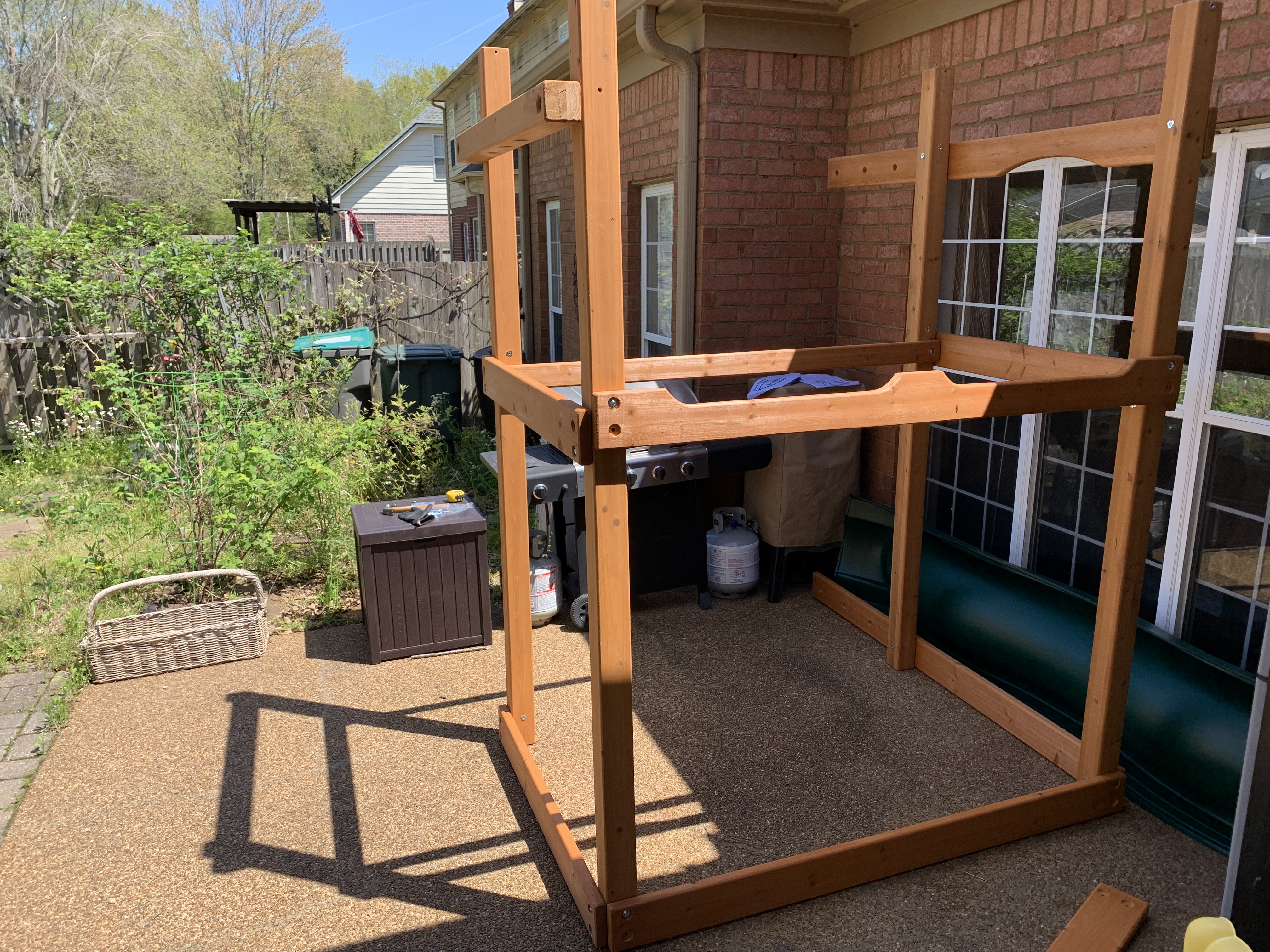 Upon our return, the arrival of the replacement boards allowed me to add the rock-climbing wall…
