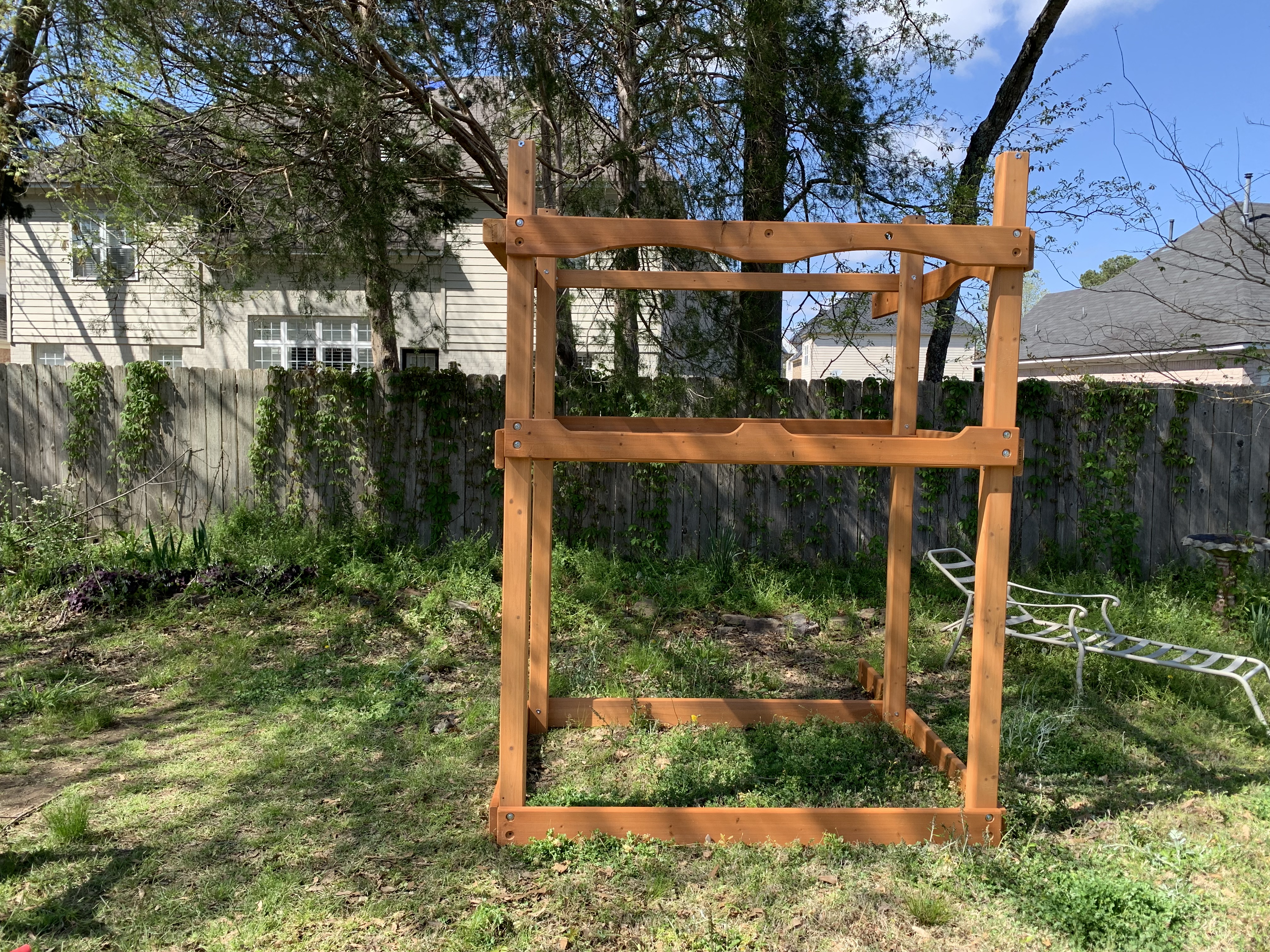 Undeterred, I dived right in. The first major step was to assemble the frame for the clubhouse although it included several individual steps. There was a caution in the instructions that stated any mistakes made at this point would require the complete disassembly. I found that I double, and triple checked myself to ensure I was following the directions correctly which obviously made everything take longer. By midafternoon of the first day, I had this assembly ready for placement in its final location…