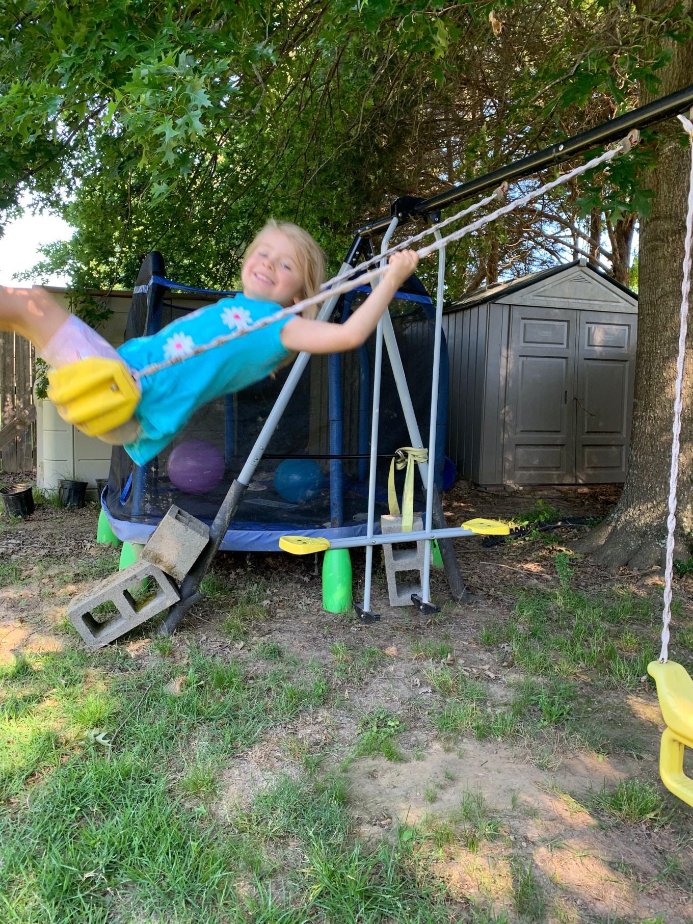 But in the ensuing five years since its original purchase, she has really outgrown that swing set although she now has a little brother that has picked up where she started.