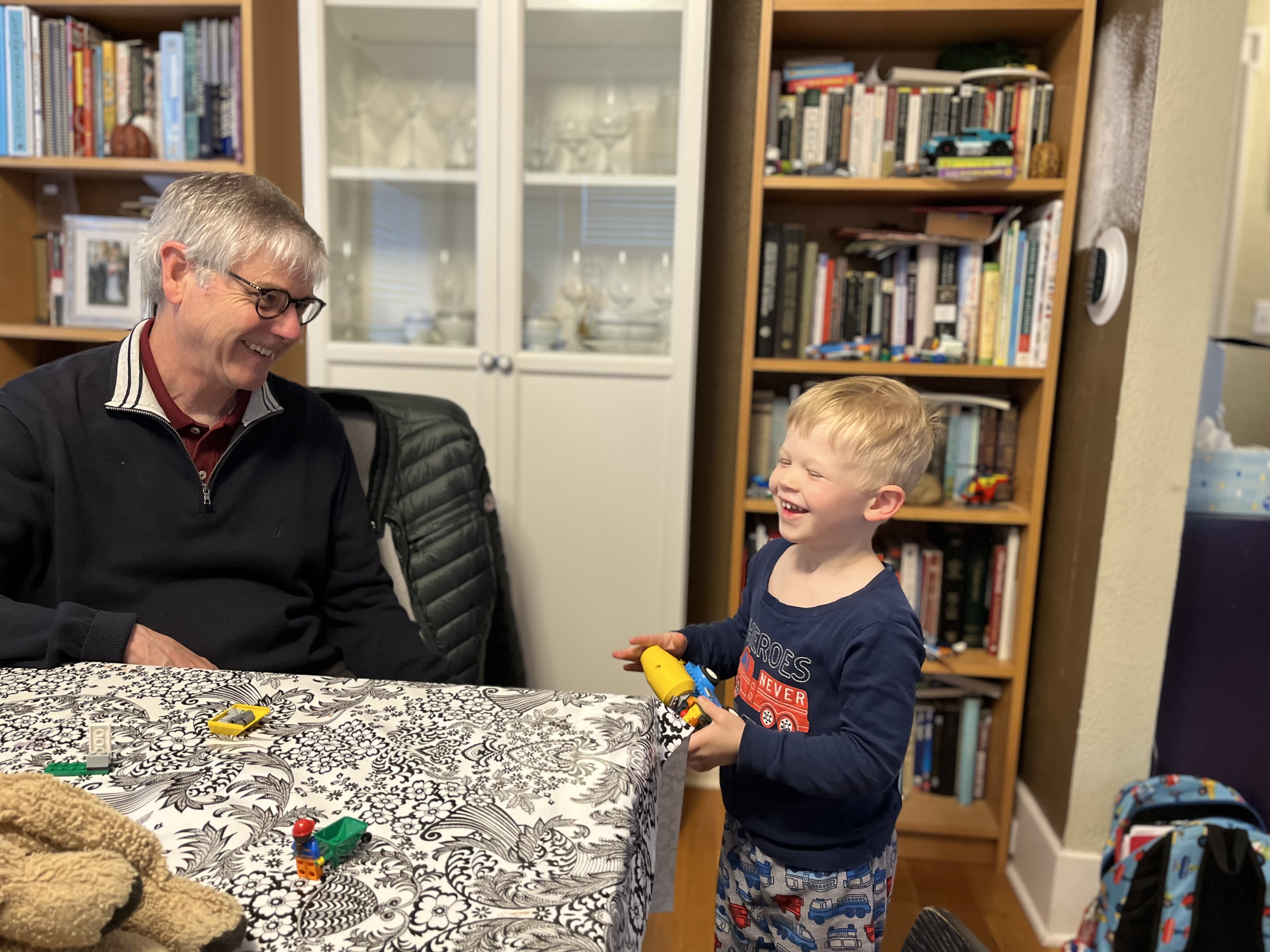 But it started with a bang. Since we see our four west coast grandchildren so infrequently, my wife always like to take a present for each one. And for these two boys, that is usually Legos.