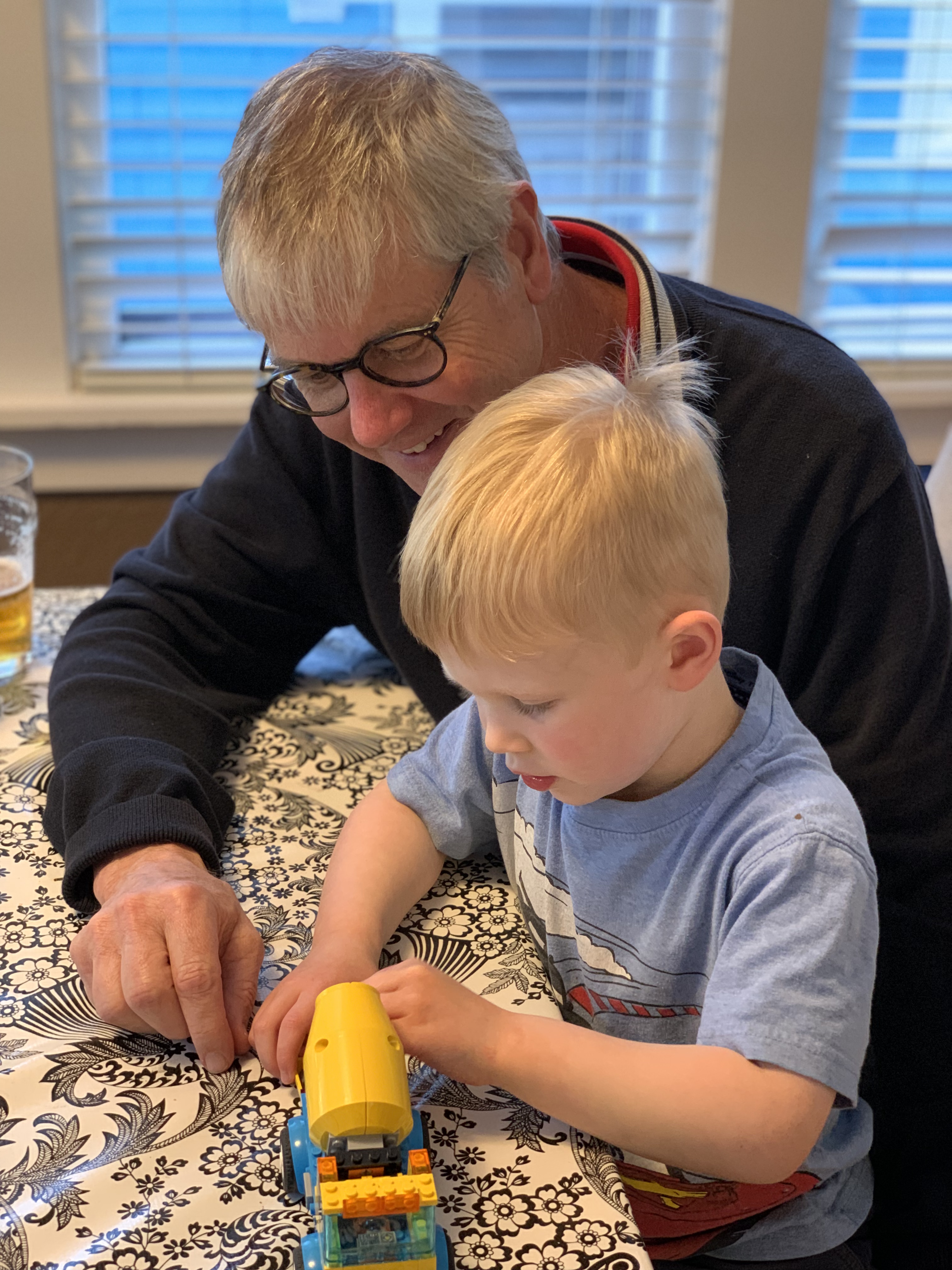 I am sure the time spent with the grandsons – including the smiles on their faces – was well worth the “bumps” along the road there. He was really focused on those legos!