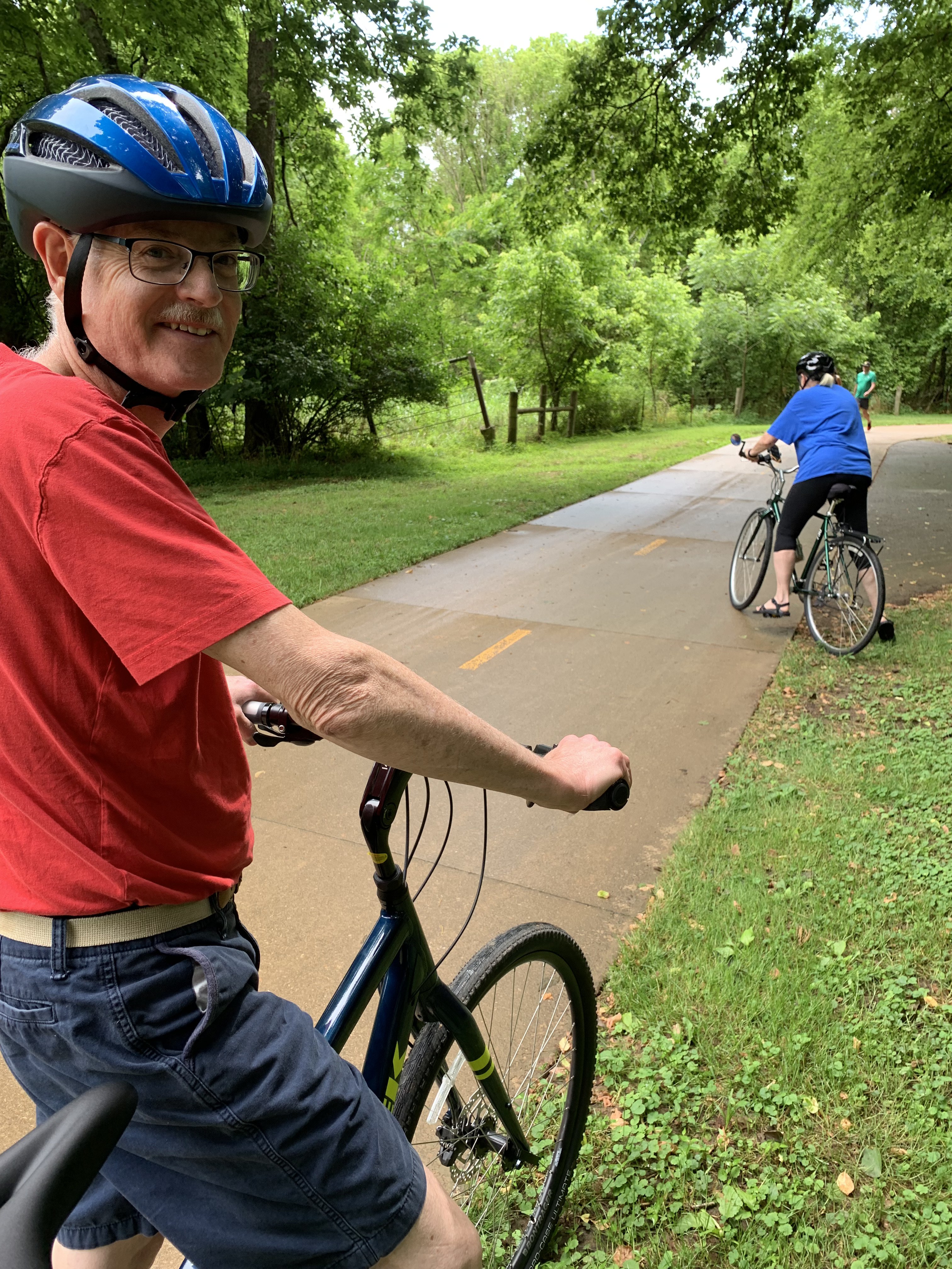 Our plan was to spend three days biking before making a trip over the weekend. Wednesday morning, we awoke to rainstorms that canceled our biking for the day. We did manage to get in a nice walk between rainstorms but not the biking we planned. However, with the rain, we did get a chance to sit out on the screened-in porch that with the forest of trees around, made it feel like we were sitting in our favorite place, Montreat.