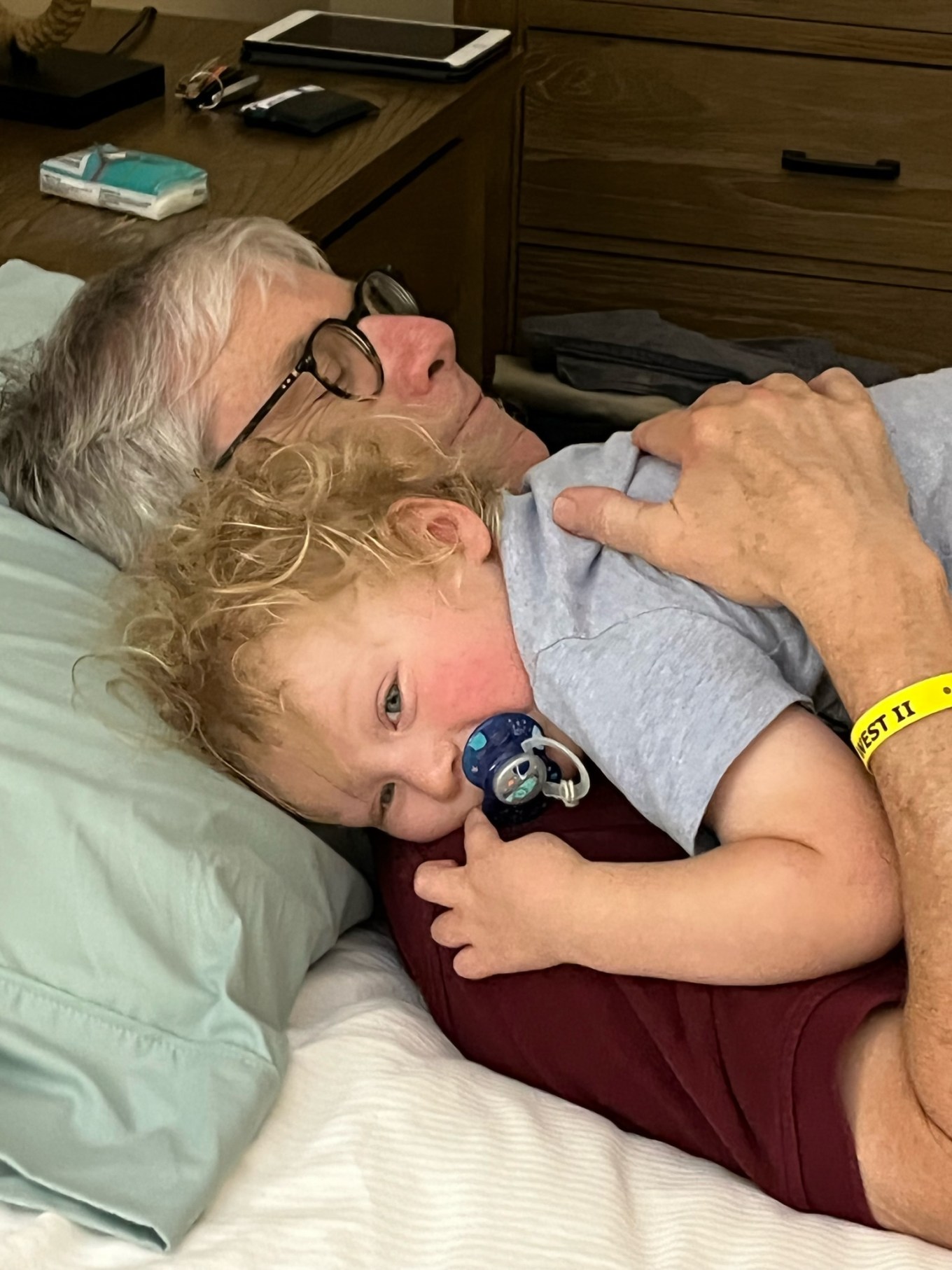 By Friday afternoon, after nearly a week of swimming, playing, and taking our morning hikes together around the condo building, my grandson and I were worn out from having so much fun.
