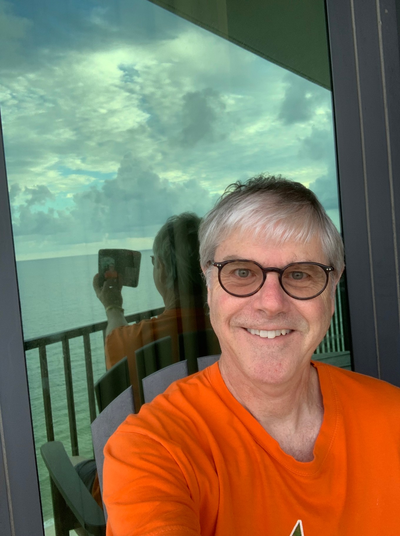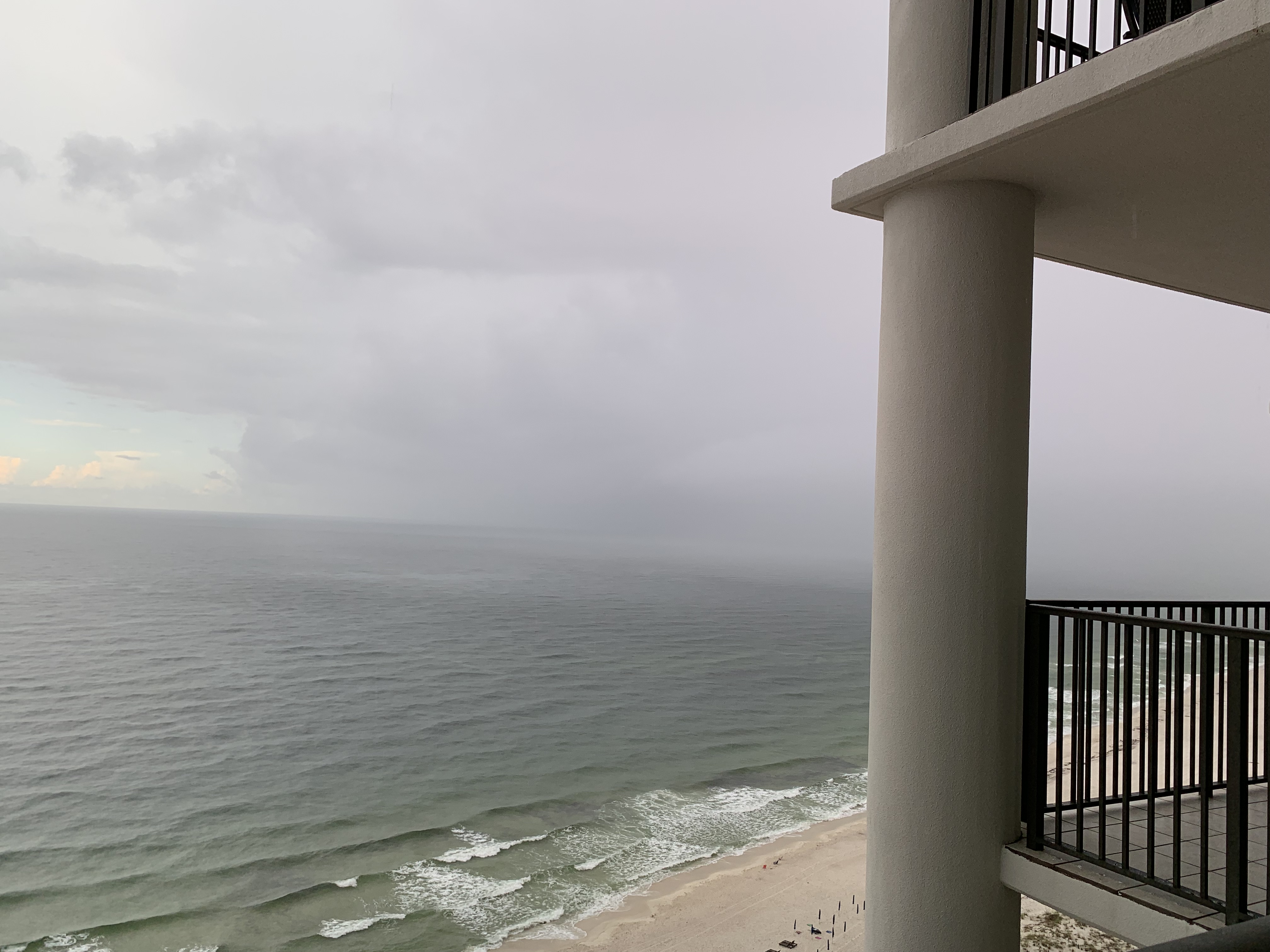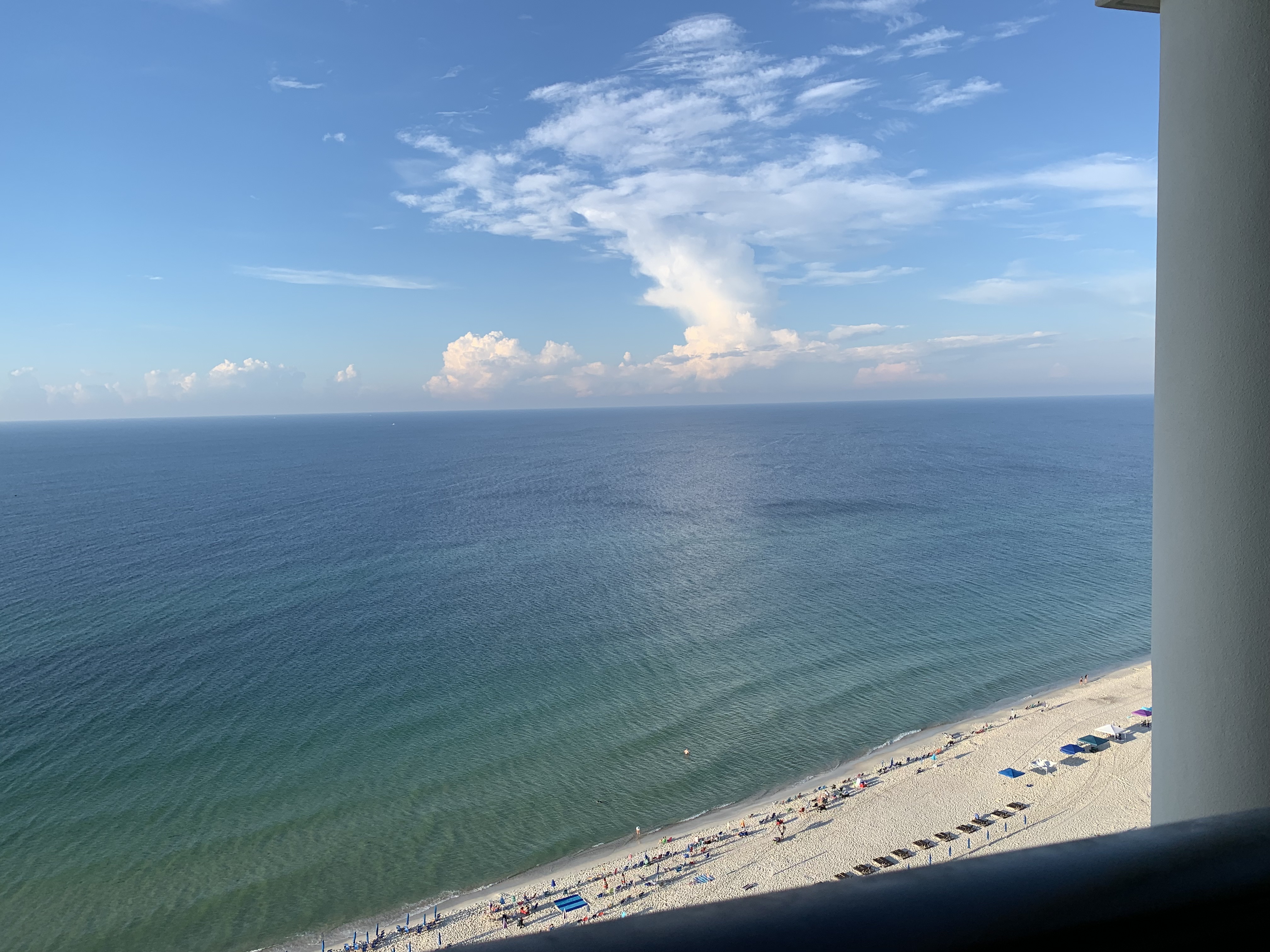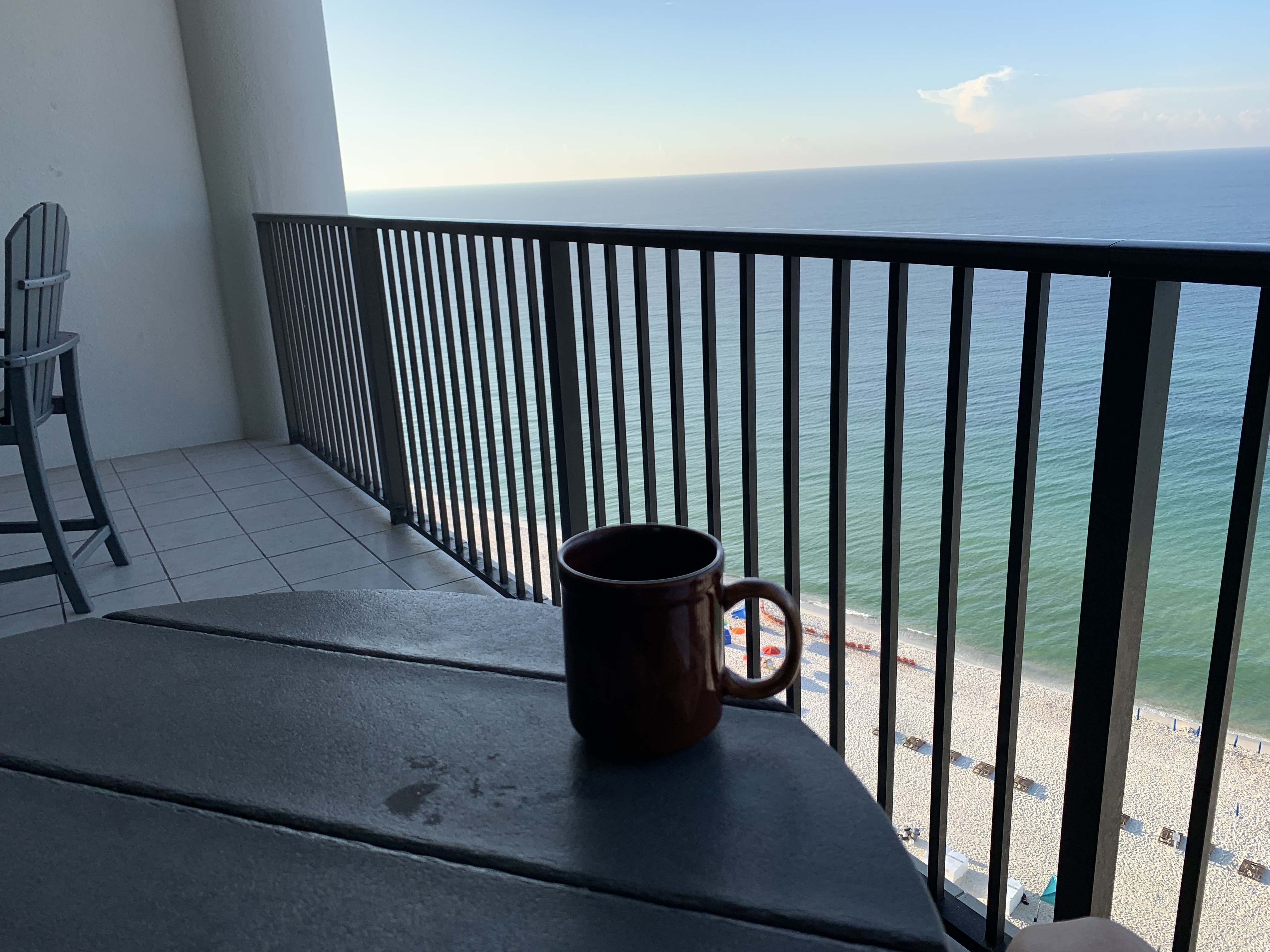 Saturday morning, we were sad to be packing up and leaving. As I suspected, it had been a different vacation, not just because our grandson was a year older but because of the weather factor as well. However, knowing that we had an early start to the hurricane season, I was thankful that we had just had thunderstorms to deal with and not hurricanes and rushed evacuations. Before checking out of our condo, we took our traditional selfie on the balcony.