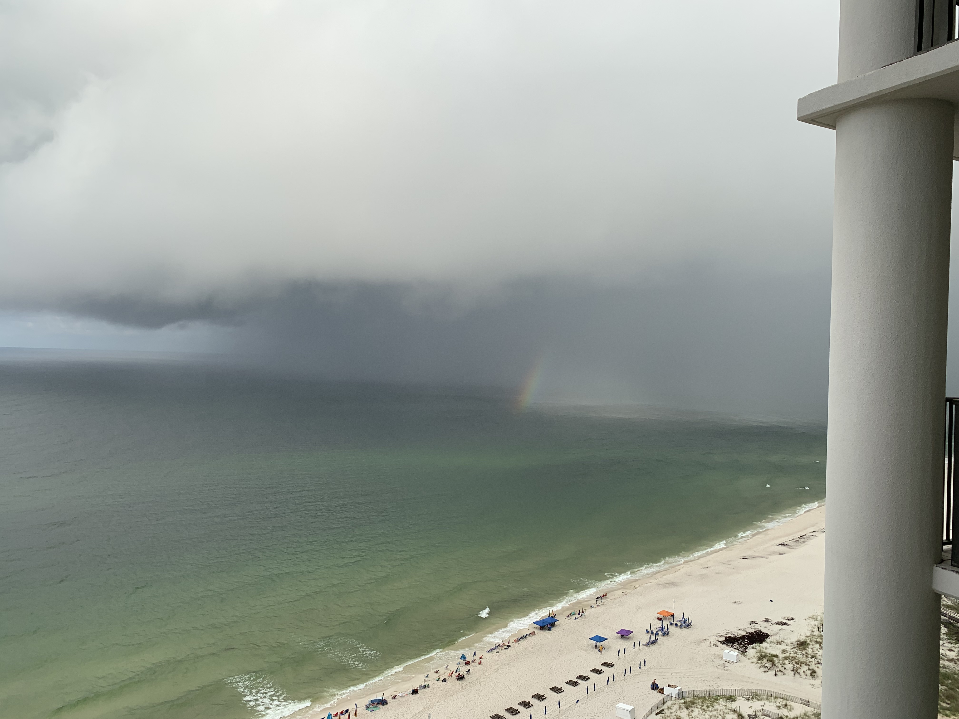 Three generation vacations are a treasure. Even with some stormy weather! I noticed a rainbow in one of your stormy pictures, and it seems to me that’s exactly what went on in Orange Beach. A good time shone through in spite of the rain! I wonder what restaurant you ate at. When we visited Gulf State Park, we ate at “The Gulf.” Hope you do repeat these three generation vacations – many times over! All kids need is a pool – and grandparents – to have the best time!