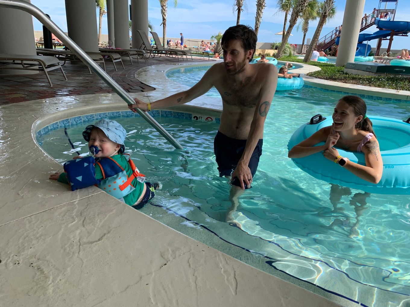 Last year, I wrote about a three-generation vacation that we took with our youngest son and his family to Orange Beach, AL, a vacation that reminded me of the three-generation vacations we used to take with my wife’s parents when our kids were young. We had such a great time last year, that we decided to do it again. And knowing we had such a nice rental with lots of available water activities, we booked the very same building, just a different condominium unit. But I knew this year would be different as our youngest grandson was 21 months old, not 9-months old as in the photo above.