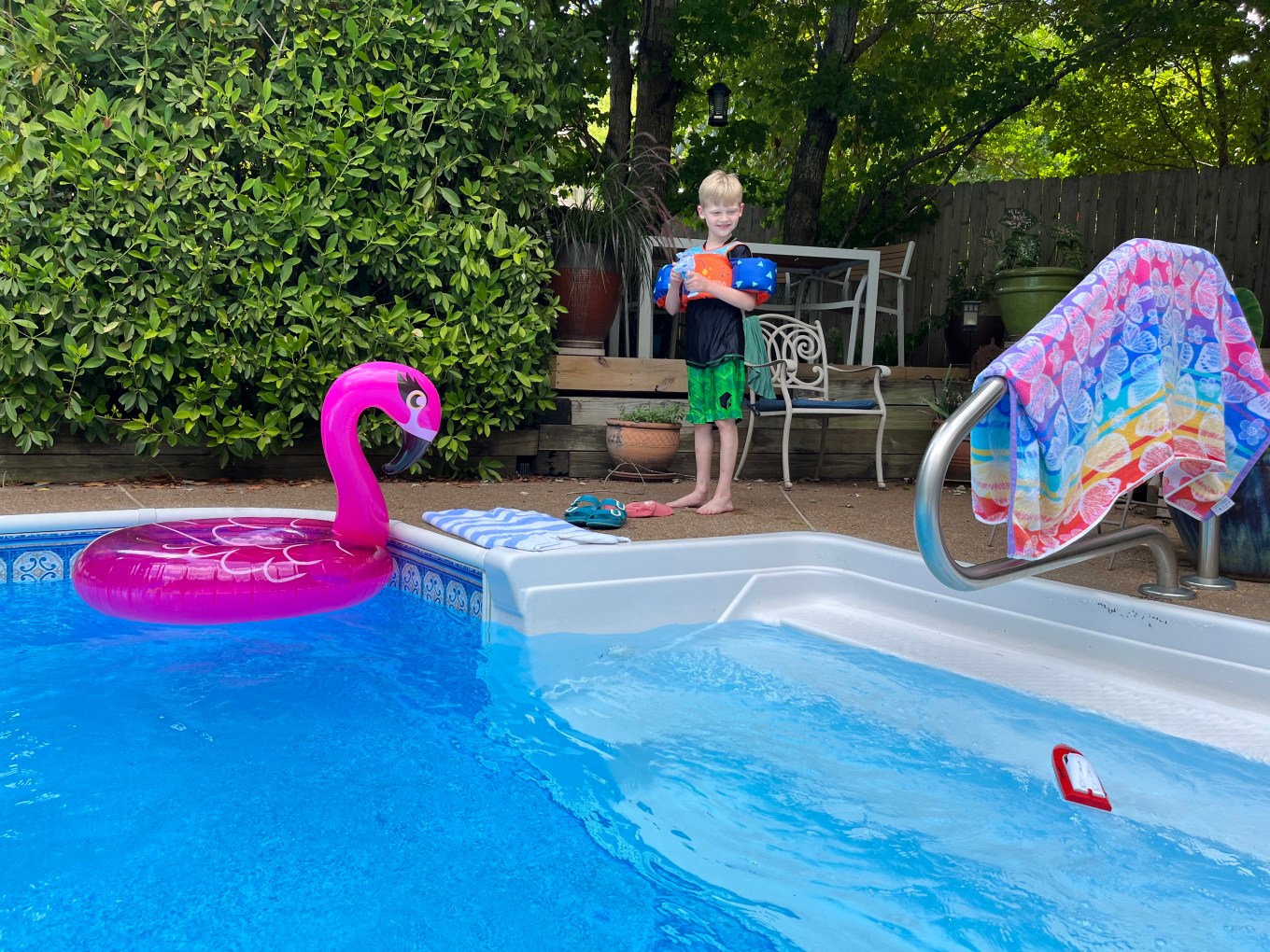 During one of our afternoon swims, I got out my little remote-control boat that I had purchased just for such an occasion. I delighted in seeing them race it around the pool. It proved quite popular but unfortunately since a second boat was not available for purchase due to the pandemic, disputes over whose turn it was forced it into early drydocking for battery recharging.